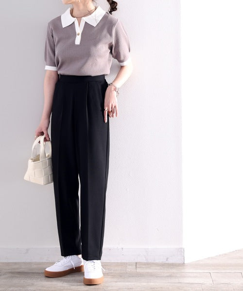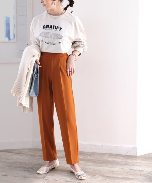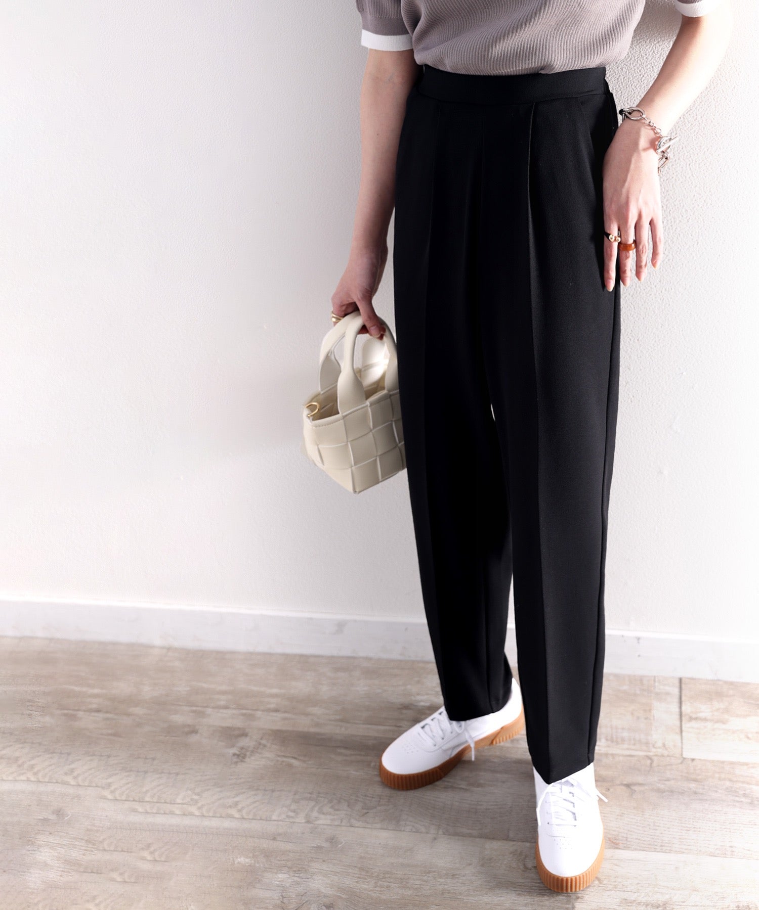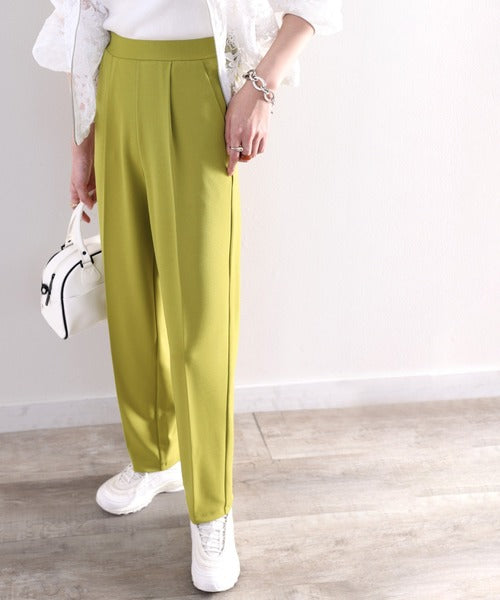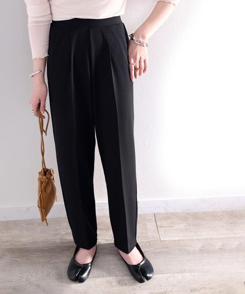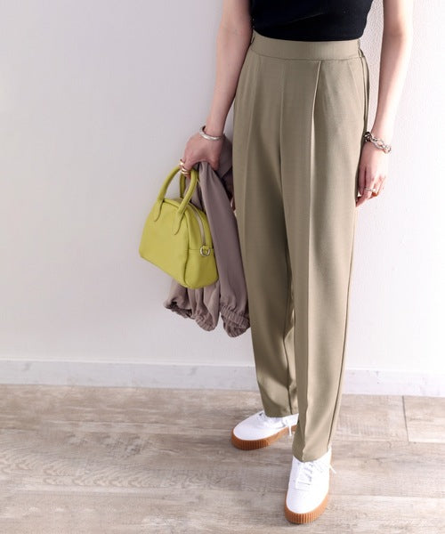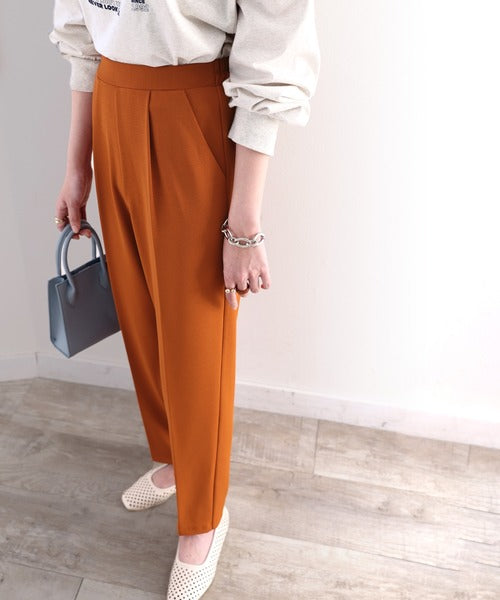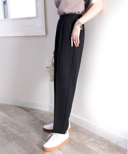 ベーシックで使いやすいセンタープレスのテーパードパンツ。