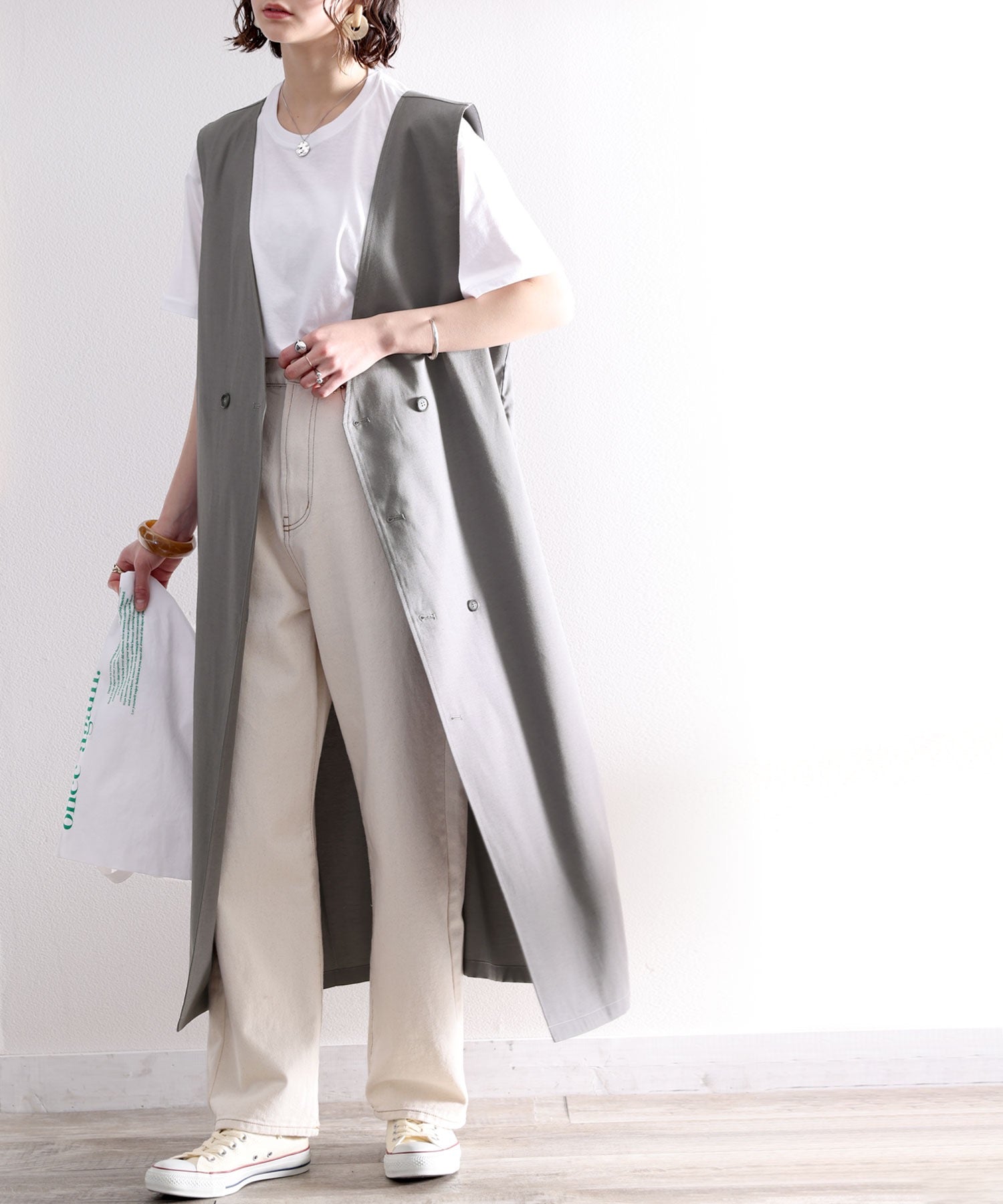 夏にはノースリーブのカットソーやタンクトップと合わせるのがお勧めです。
