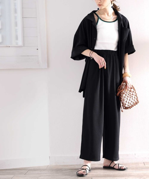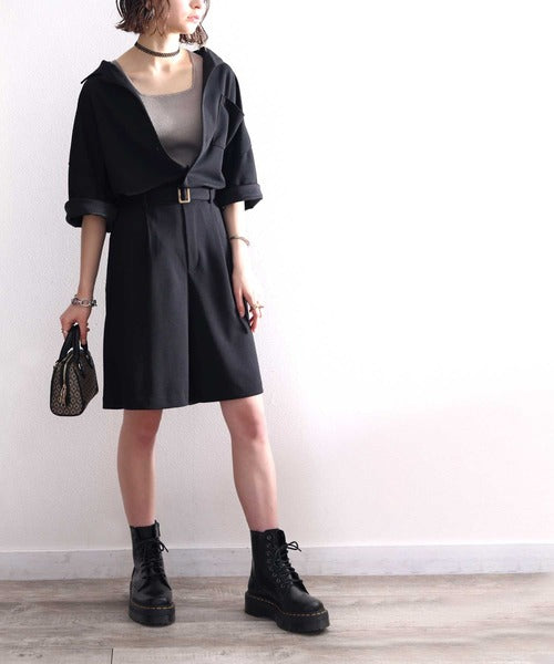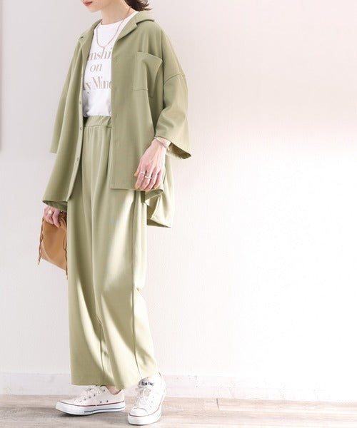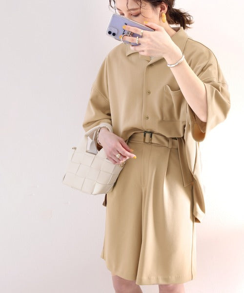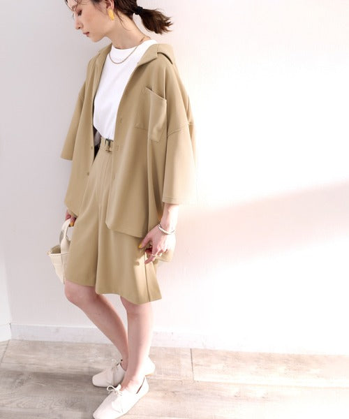 同素材のテーパードパンツやショートパンツと合わせてセットアップ風に着ても◎