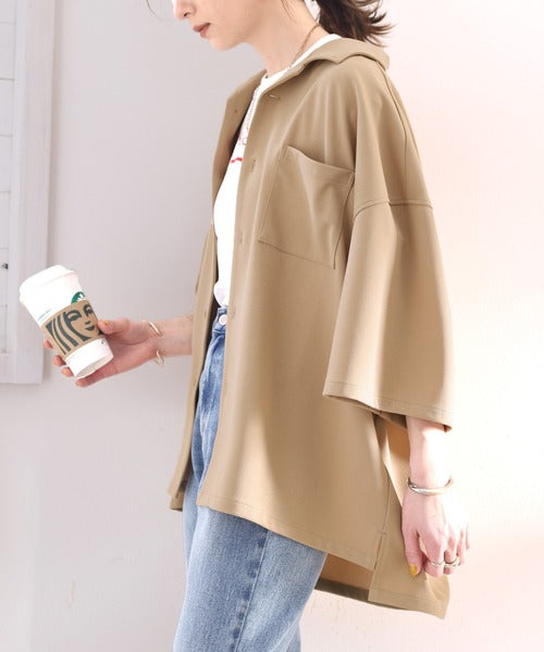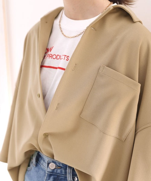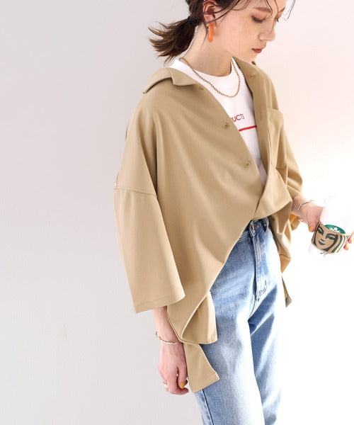 涼やかな生地感がお洒落なオープンカラーシャツ。