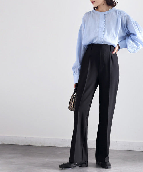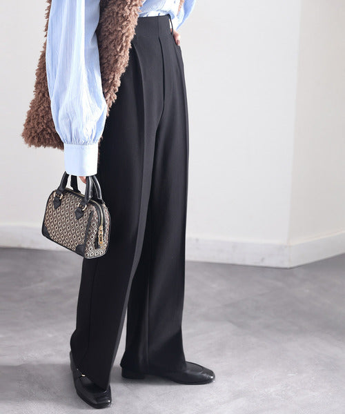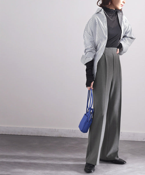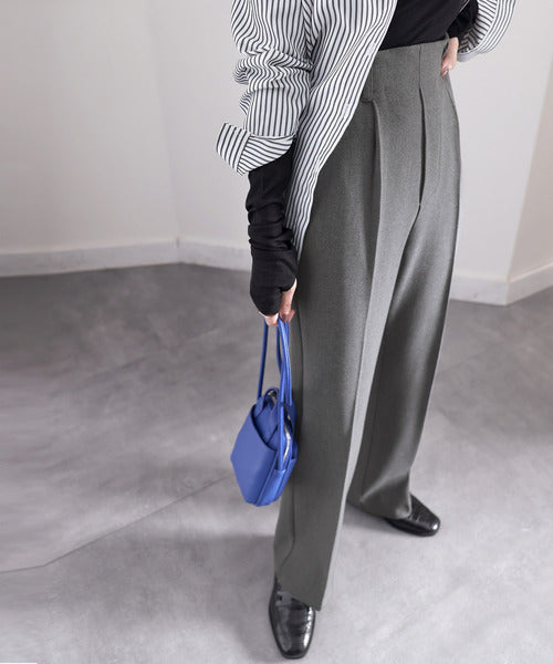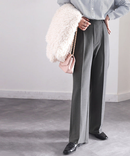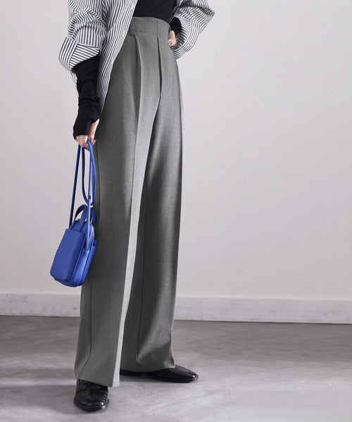 一枚で叶えるウール調セミフレアセンタープレスパンツ。