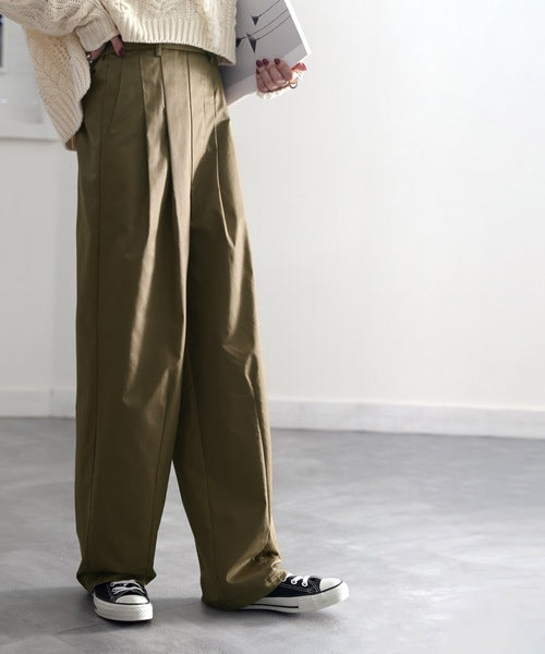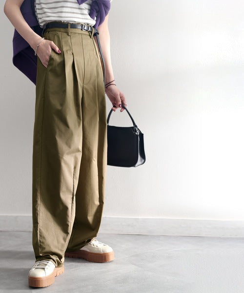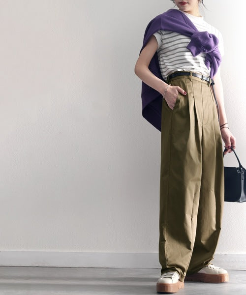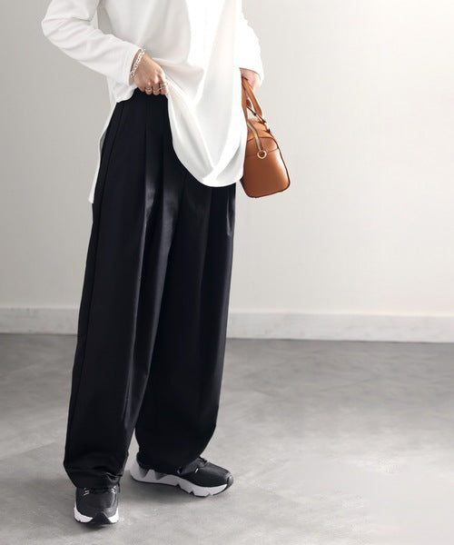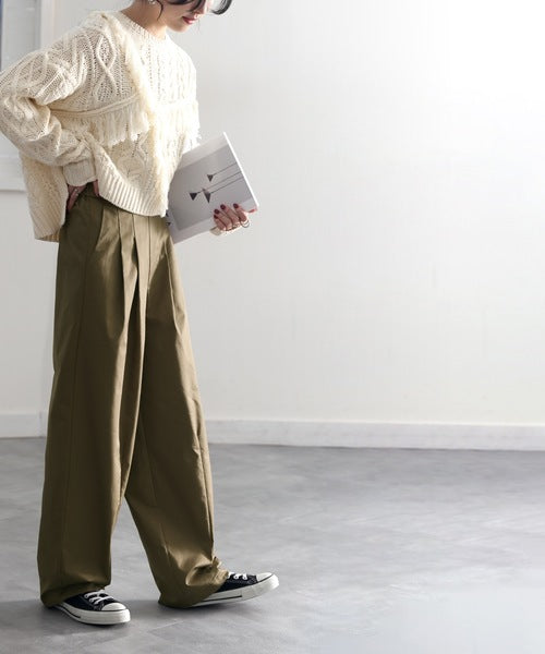 2タック入りでたっぷりとヒップまわりにゆとりを持たせたルーズパンツ。