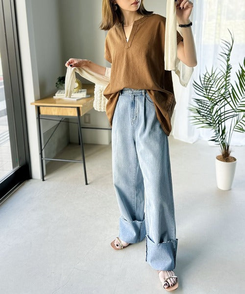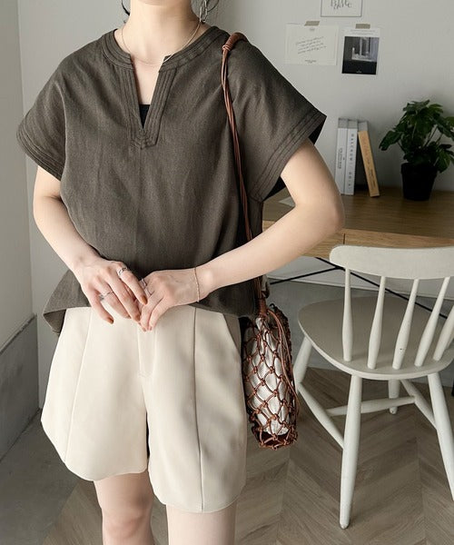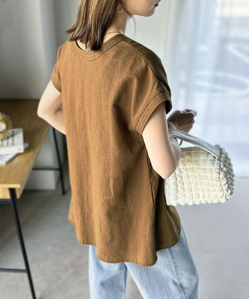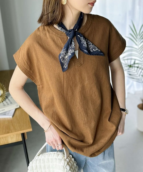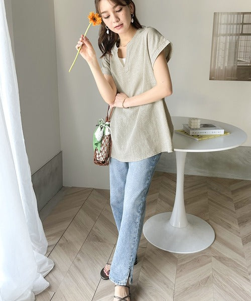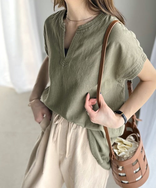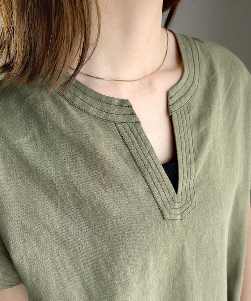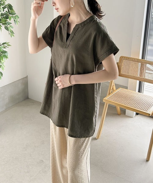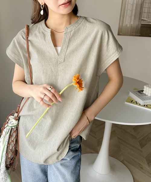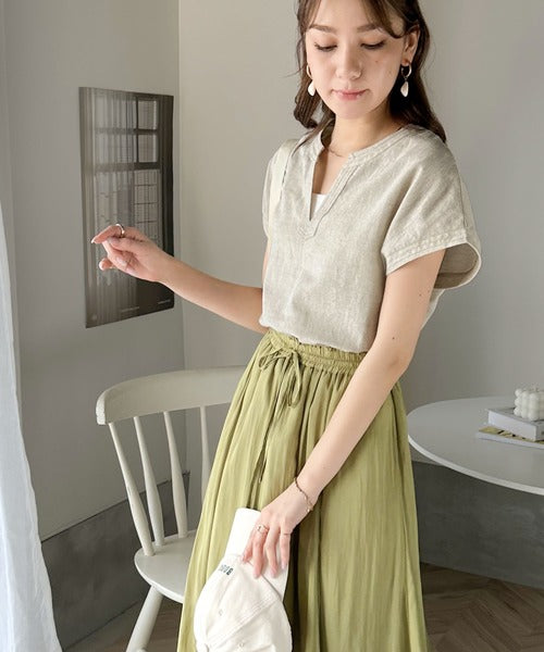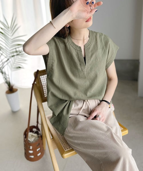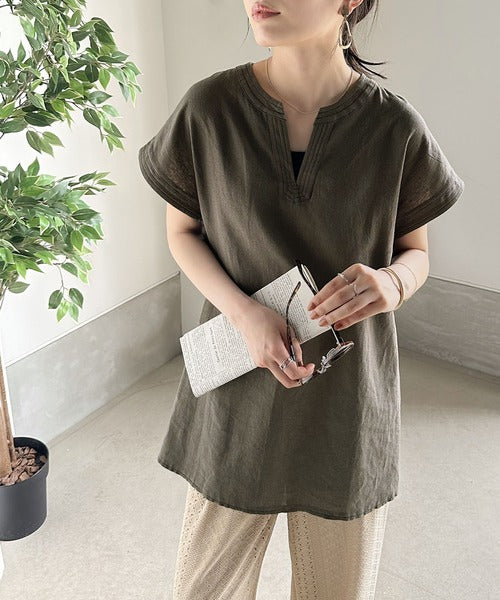 上品リラクシー。2way麻混Vネックトップス ce0940099