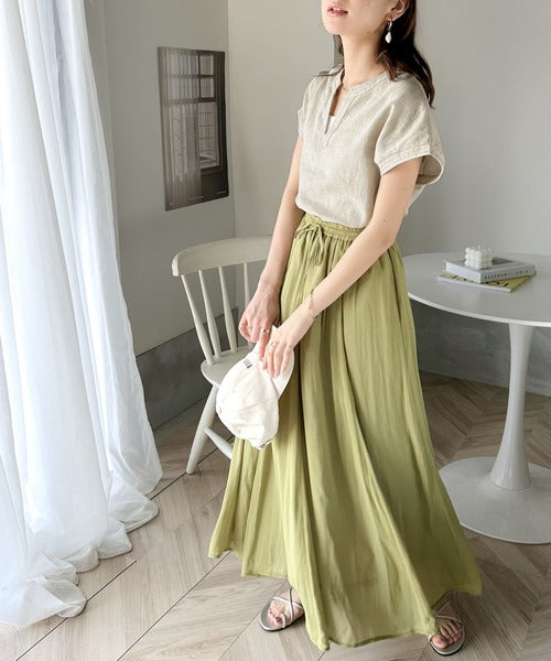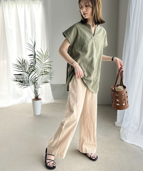 麻混素材で涼しさもありながら抜け感も抜群◎