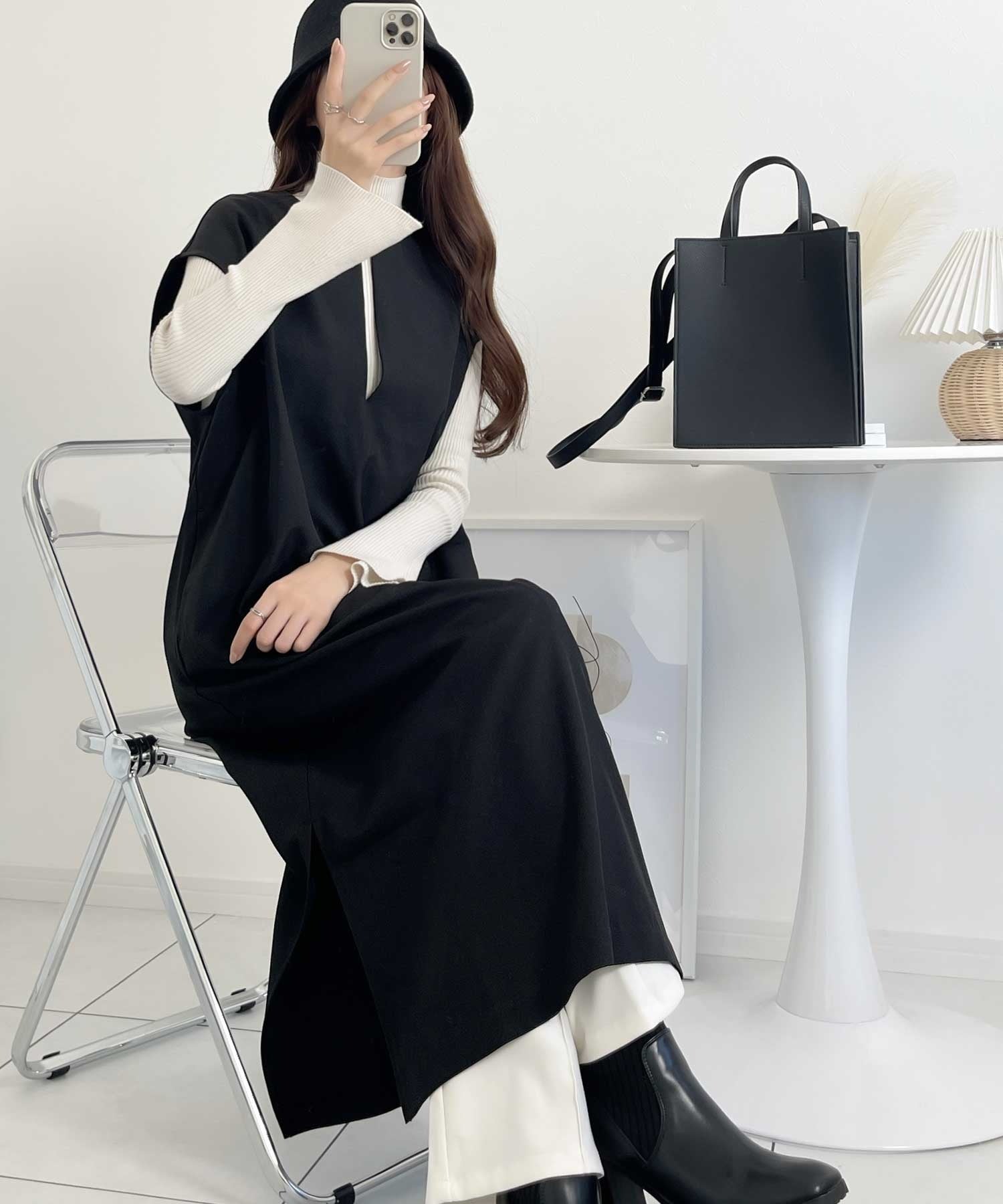ゆったりながらもIラインシルエットでスタイルアップ叶う。