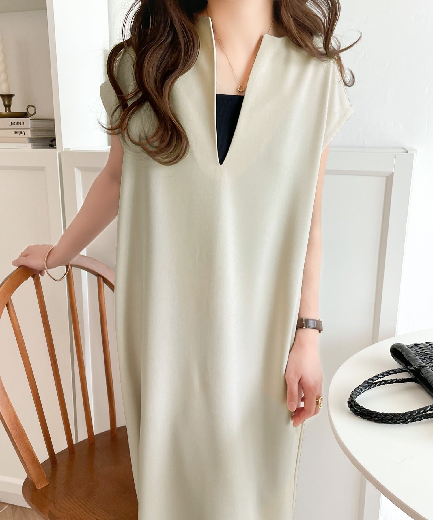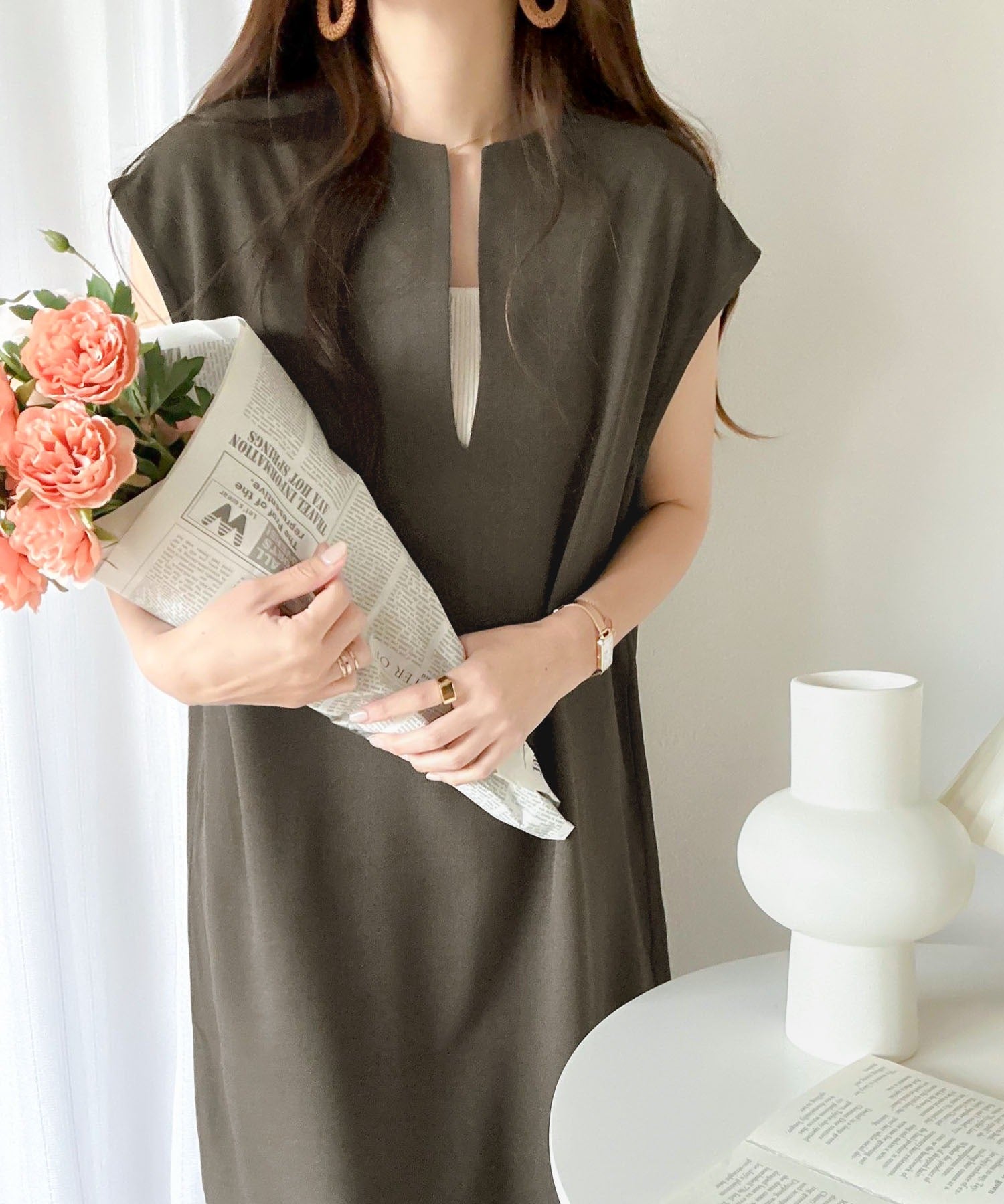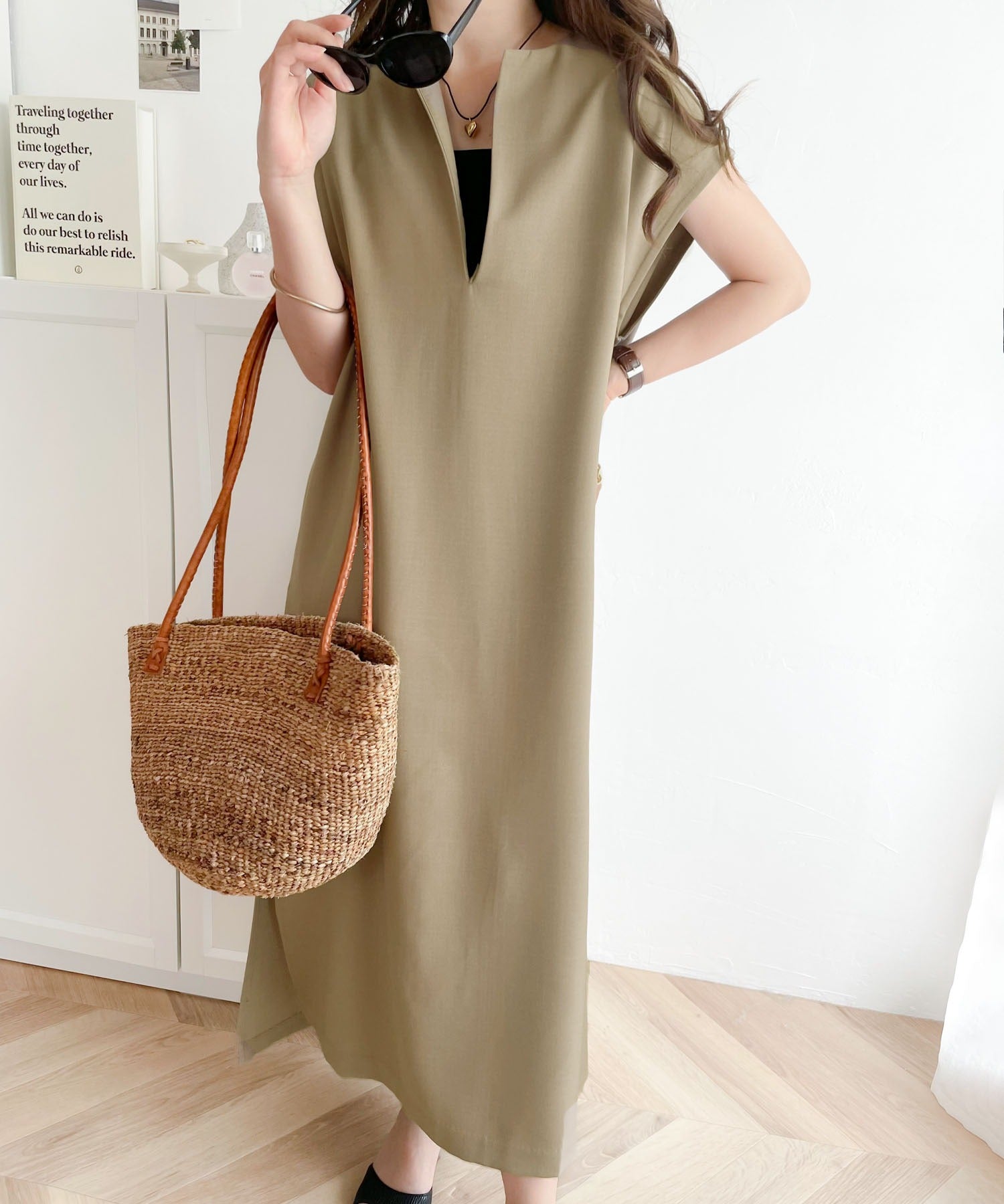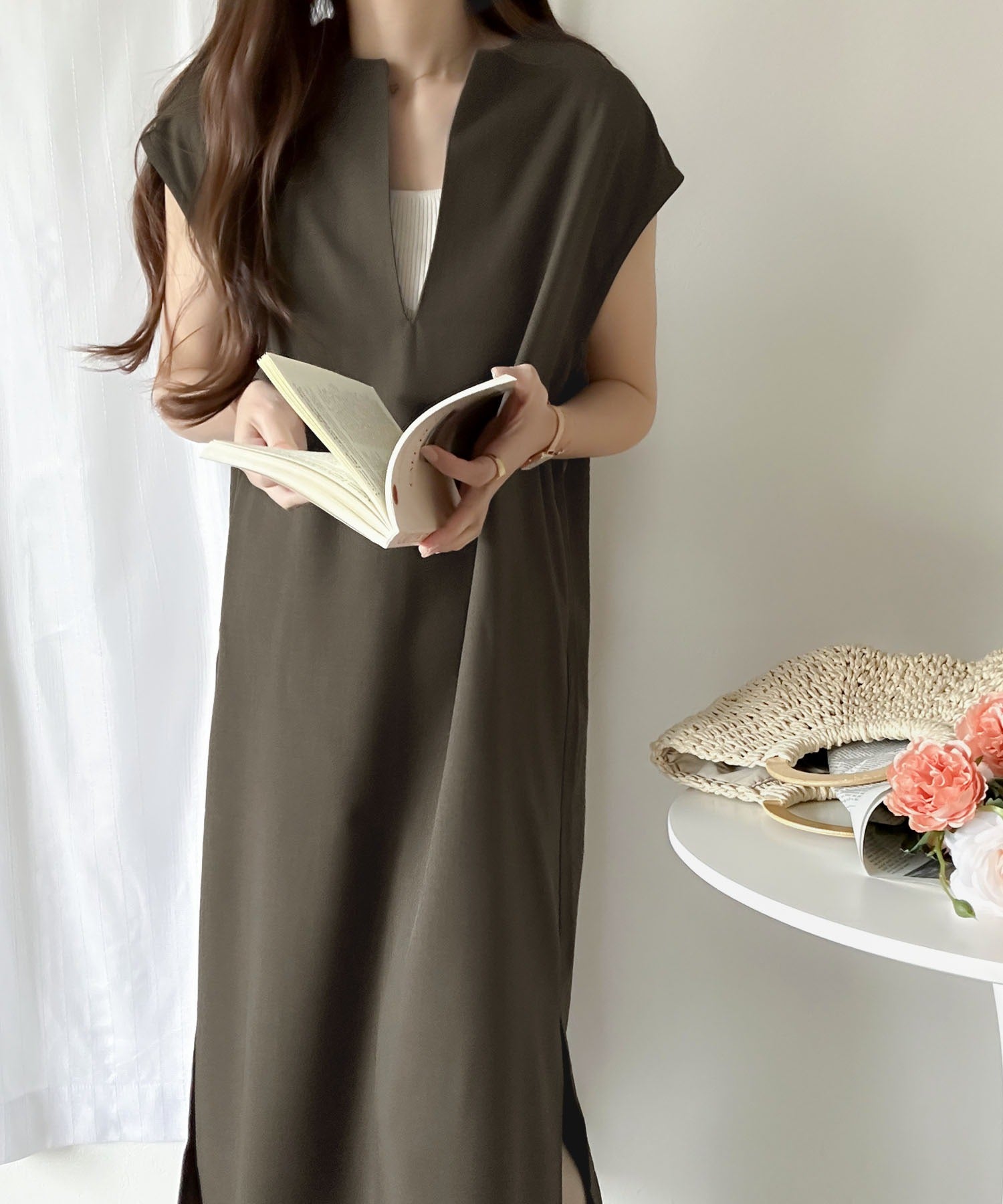 1枚で大大活躍。リネンライクカフタン調サイドスリットロングワンピース ce0940126