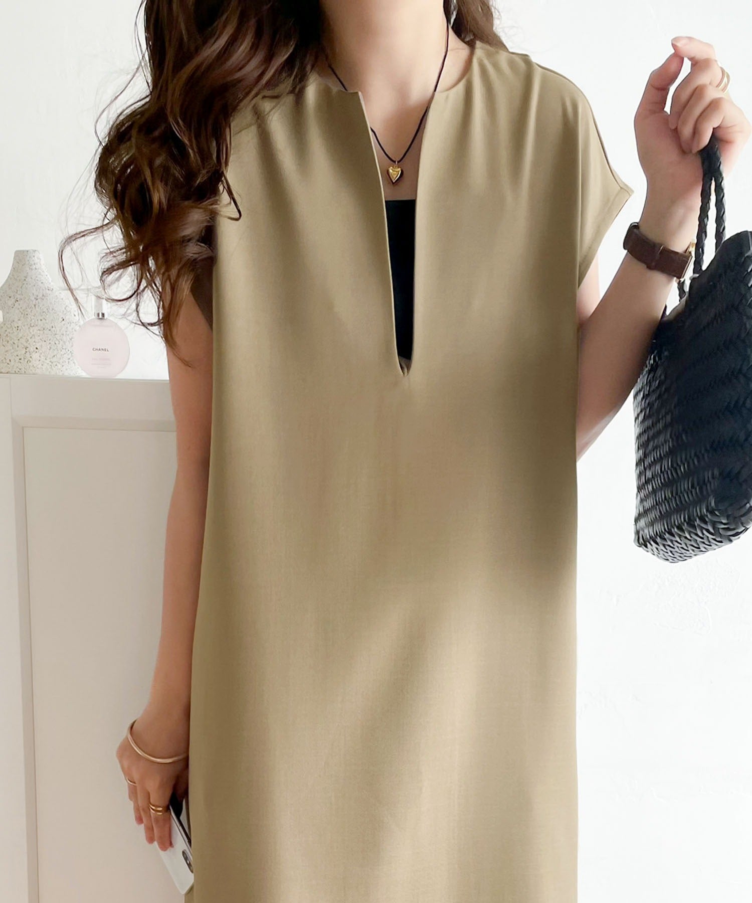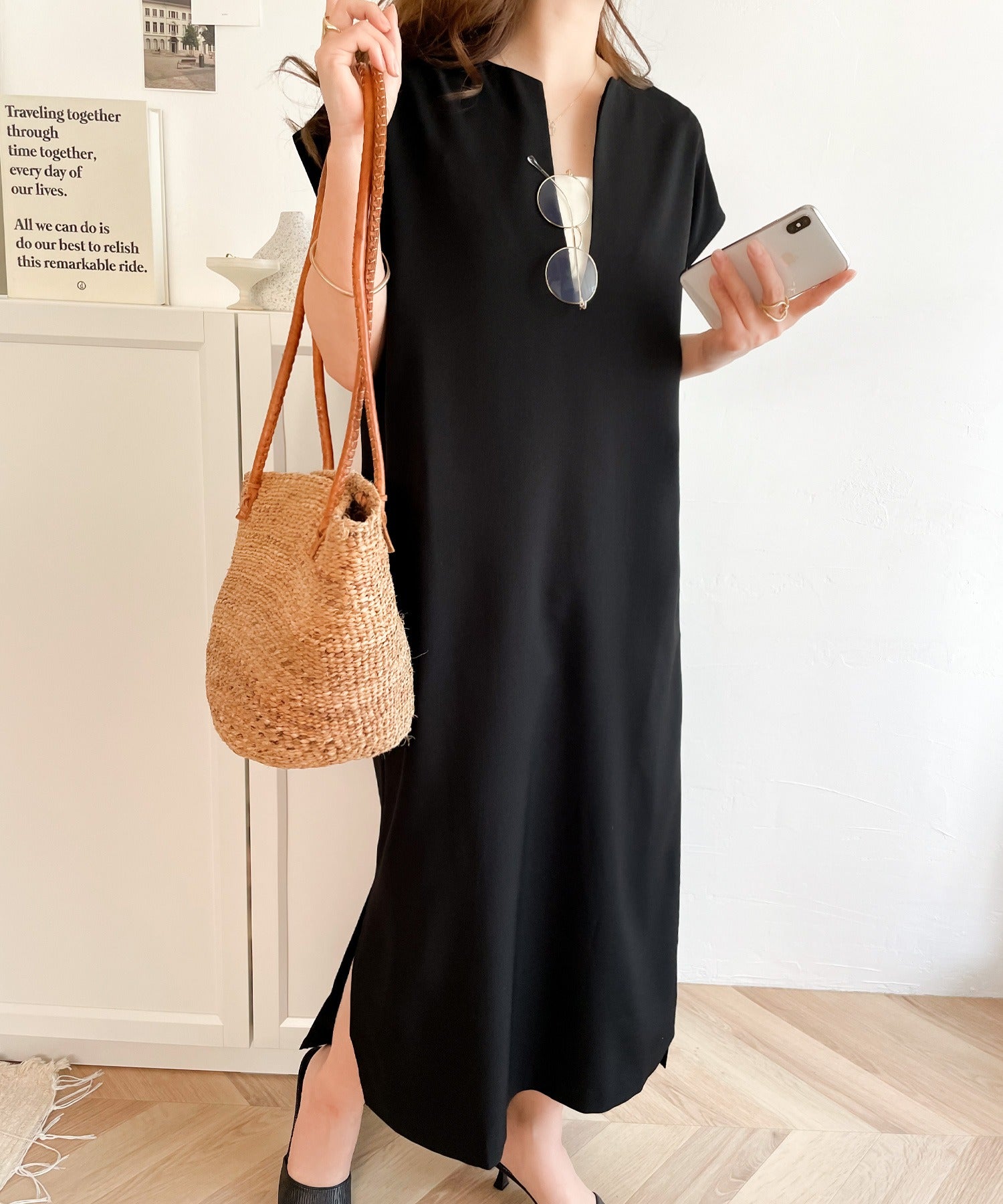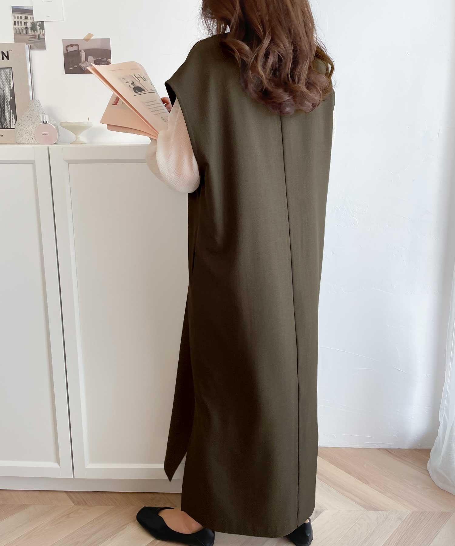 1枚で大大活躍。リネンライクカフタン調サイドスリットロングワンピース ce0940126