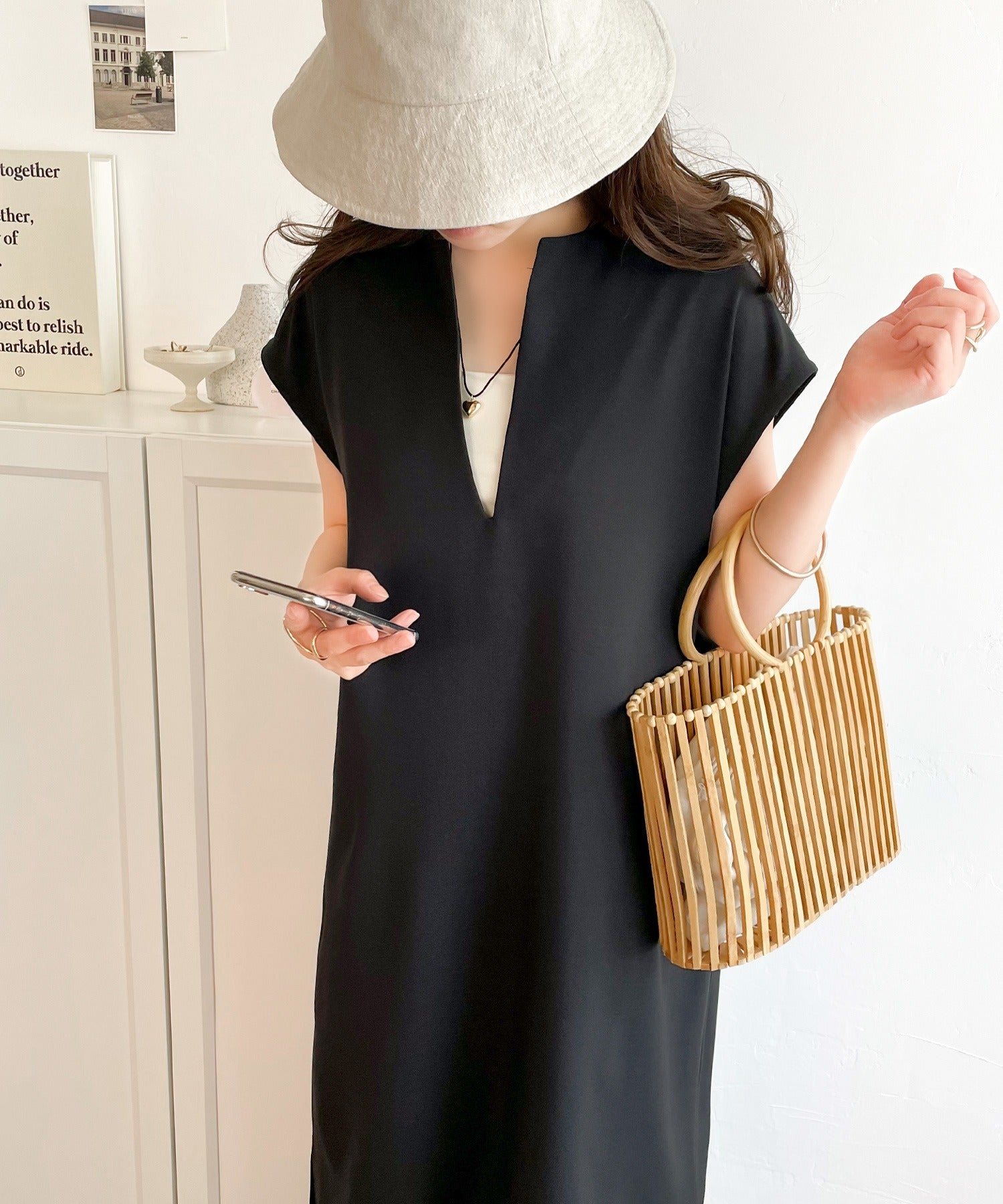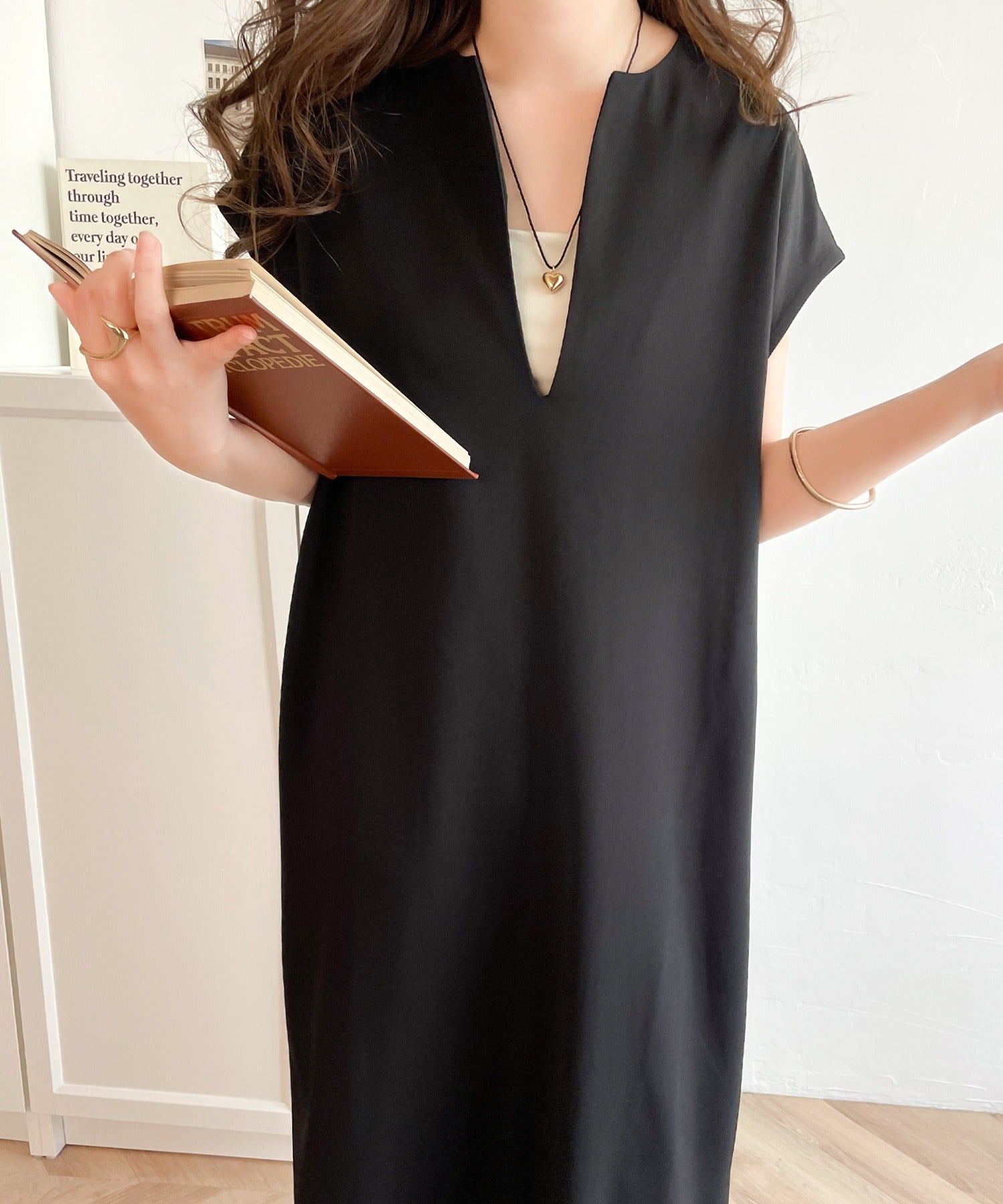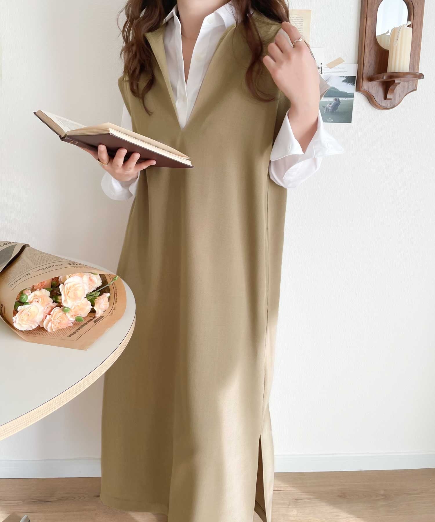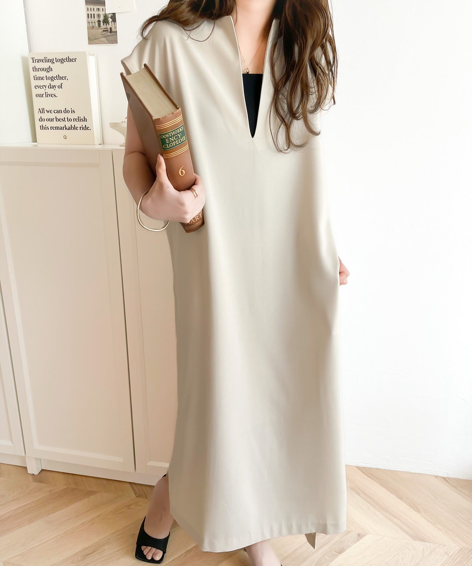 1枚で大大活躍。リネンライクカフタン調サイドスリットロングワンピース ce0940126