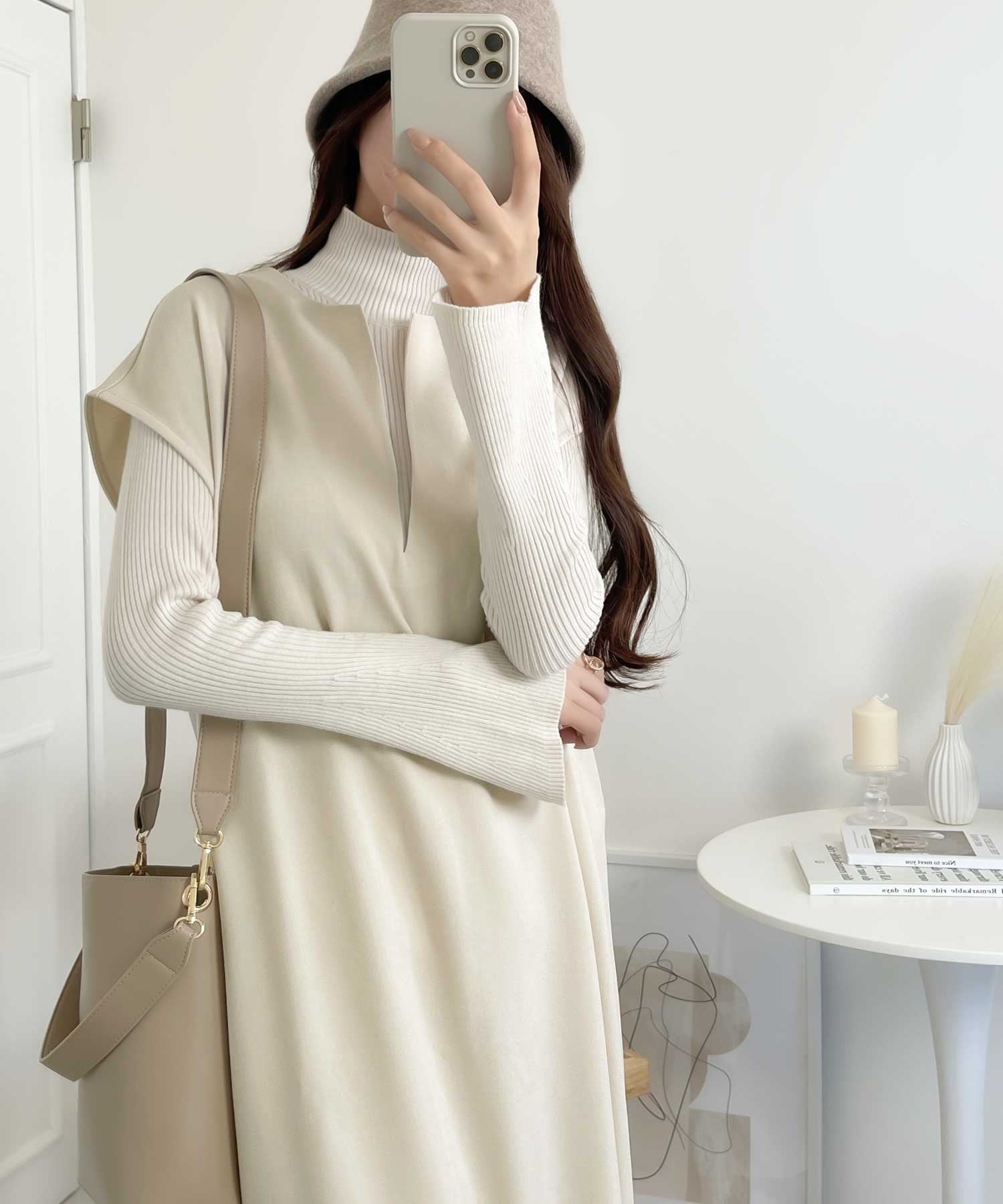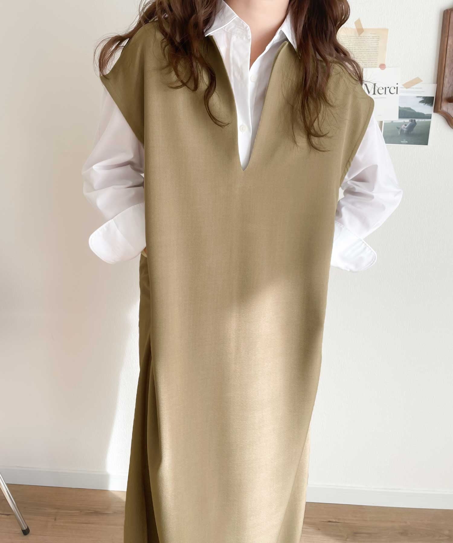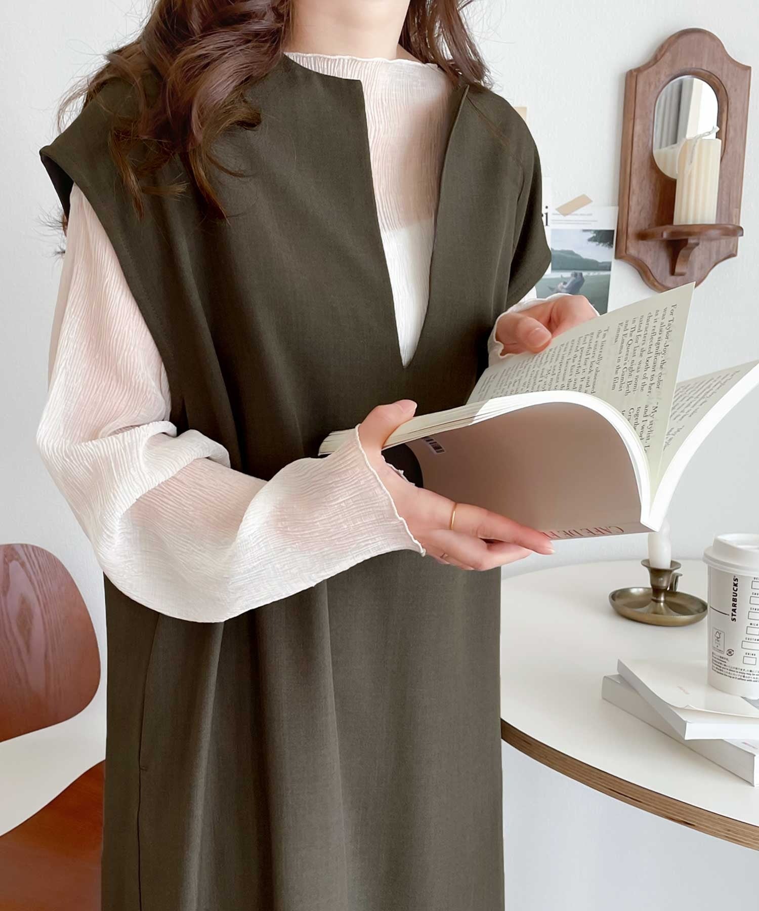 優しい着心地でレイヤードコーデを楽しむロングワンピ。