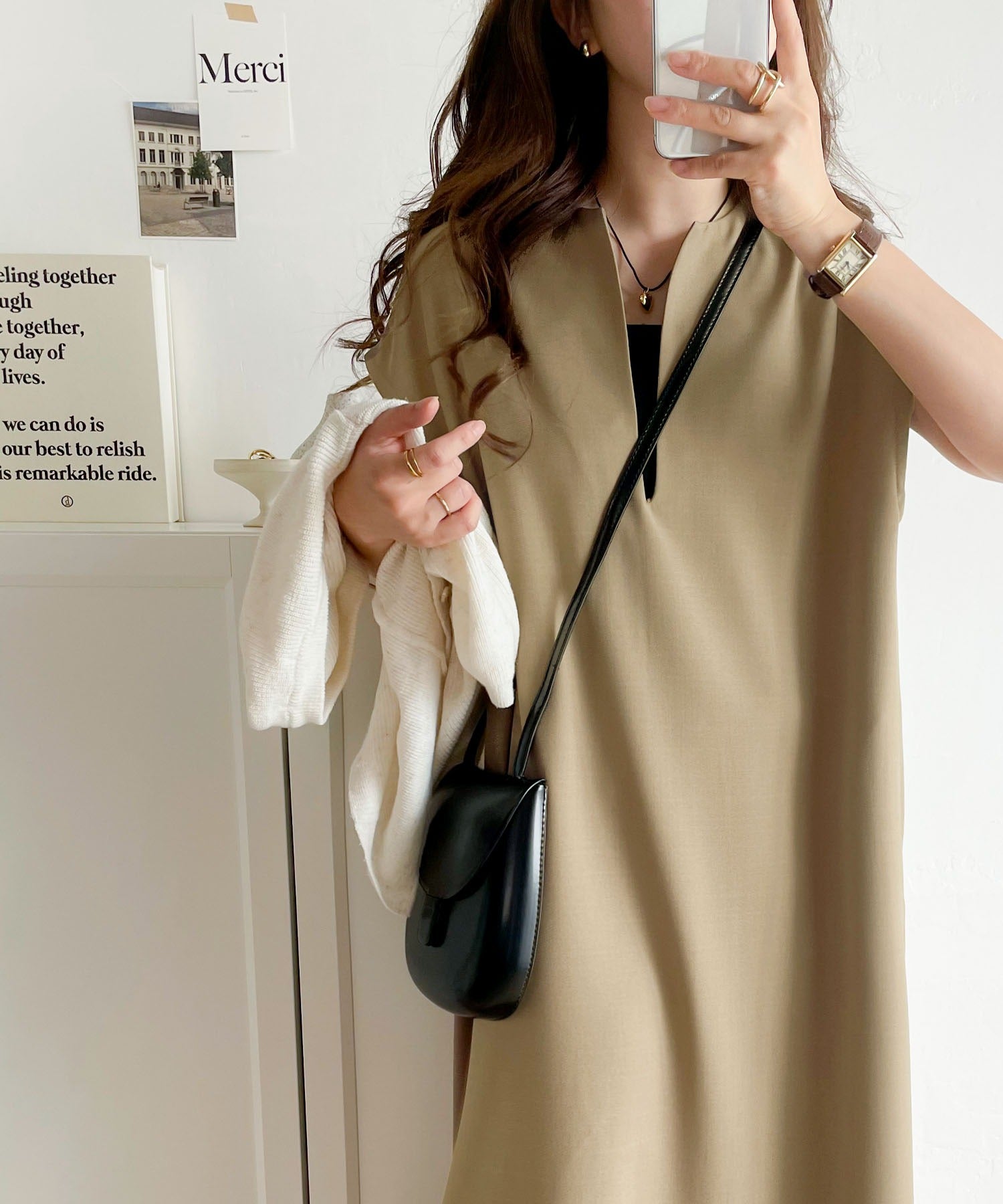 表面感が特徴のリネンライク生地で仕立てたワンピース。