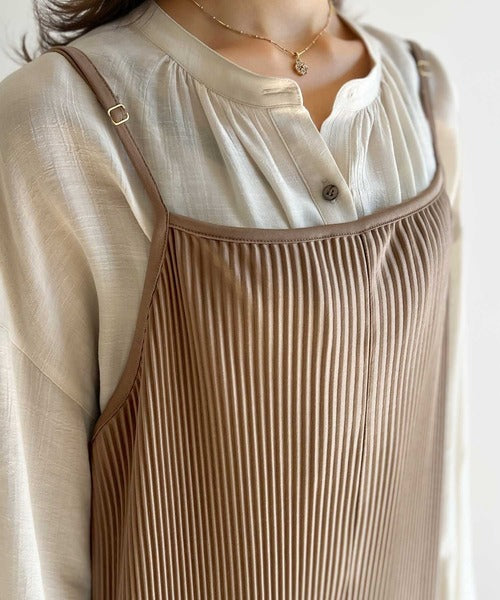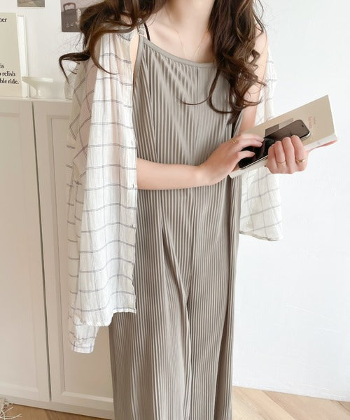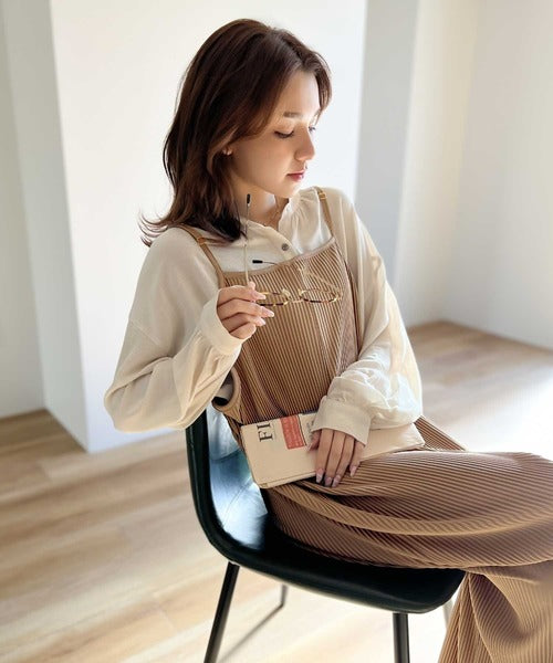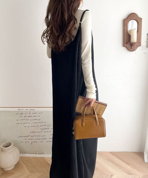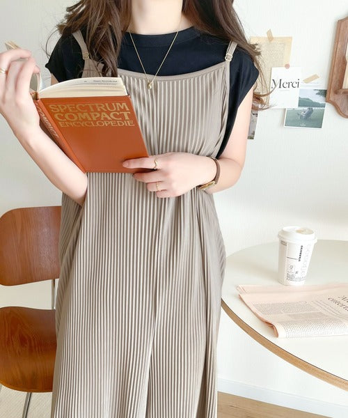 キレイ目プリーツとほどよい光沢感で、上品レディなサロペット。