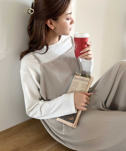ゆるっとこなれ感。2wayプリーツサロペットワイドパンツ ce0940127