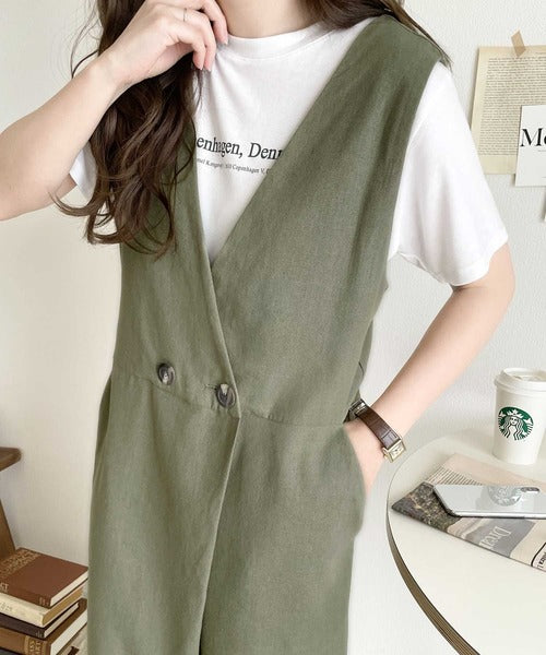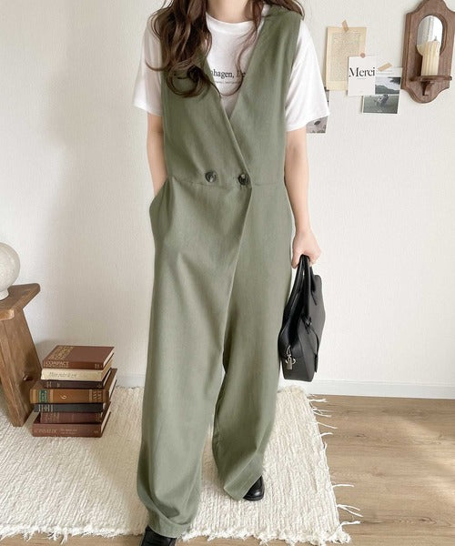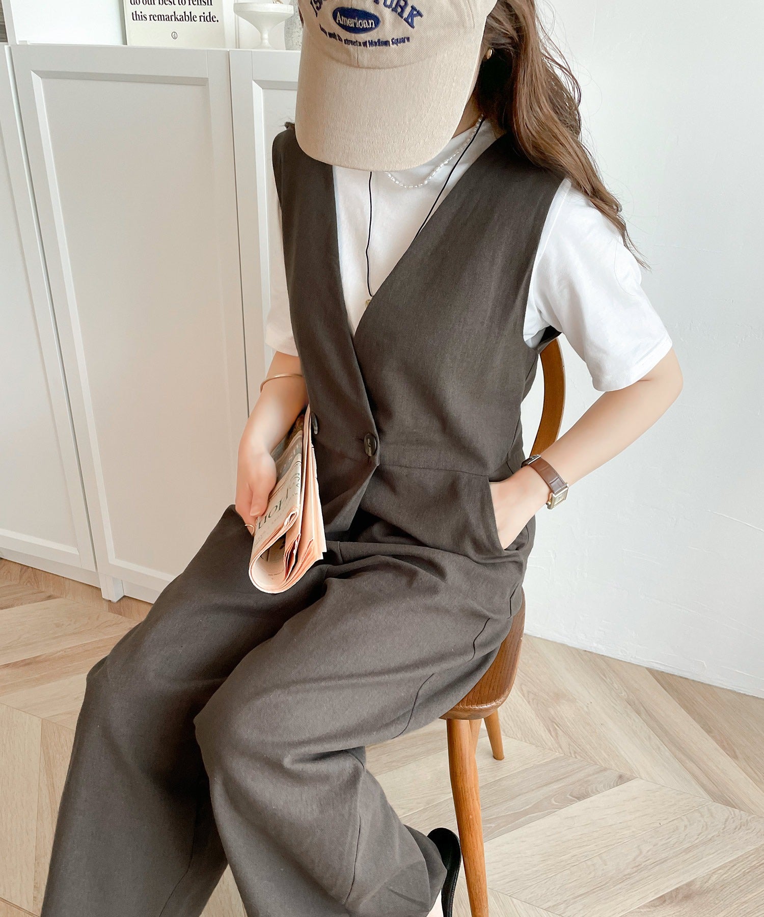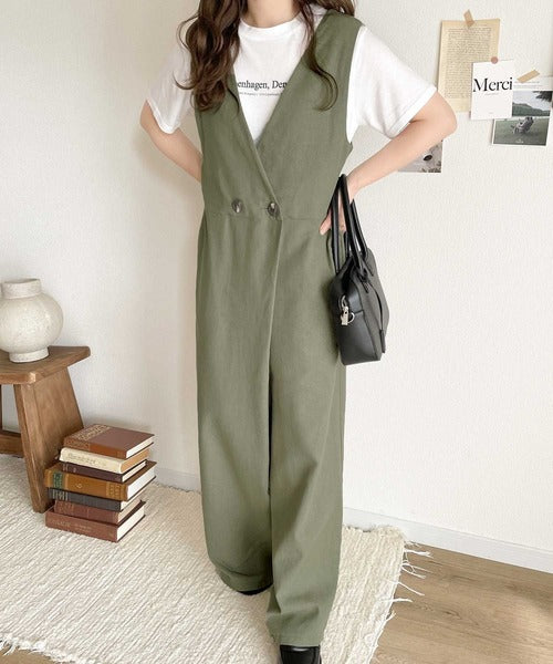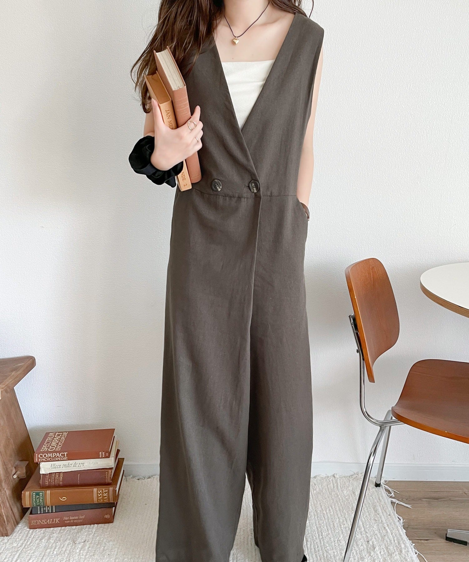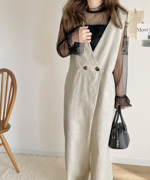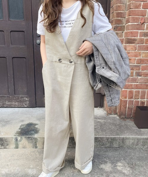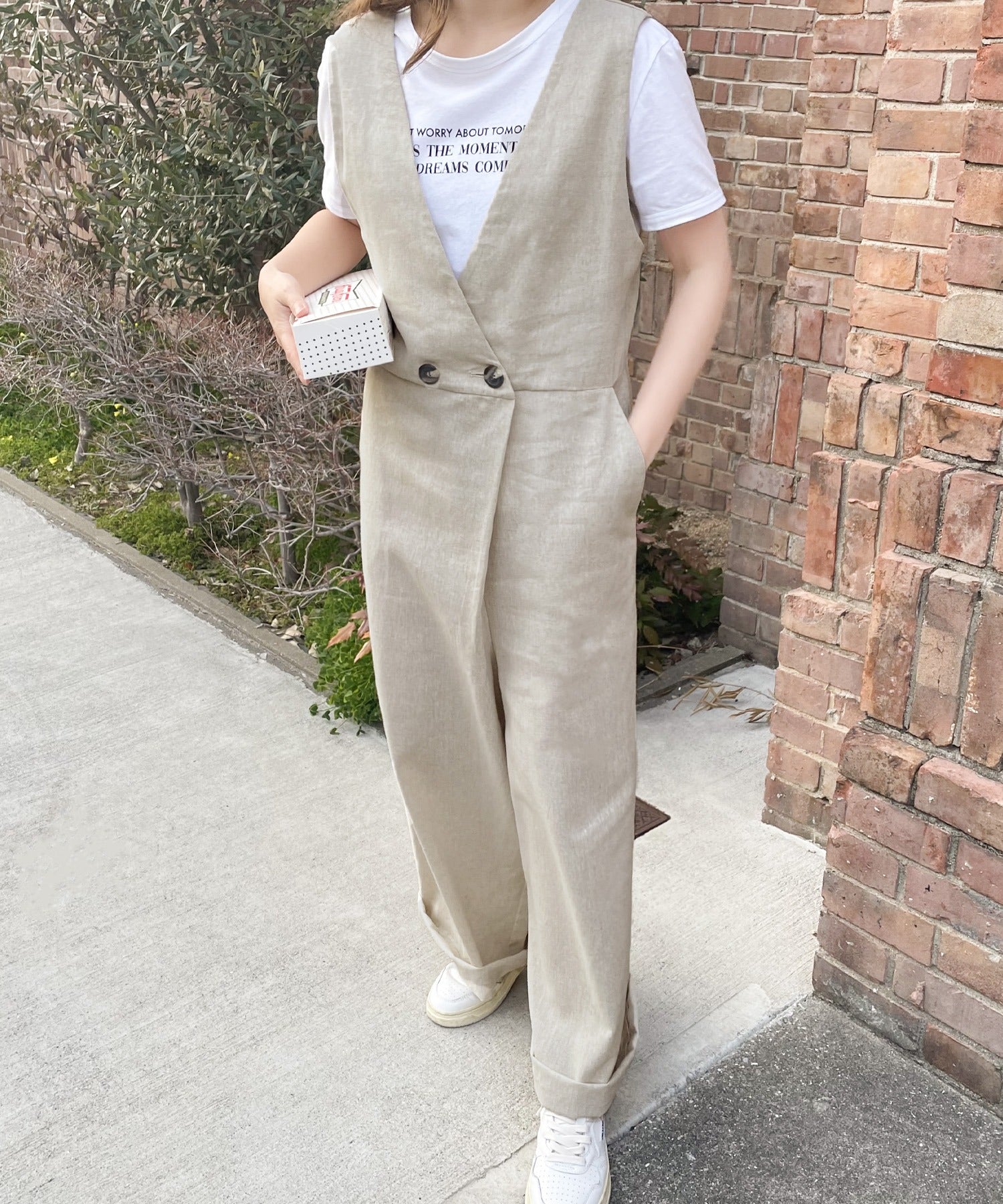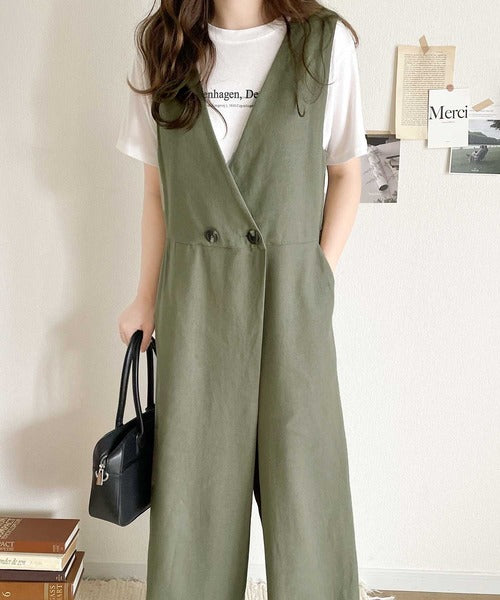 1枚でこなれレディ。麻混ワイドオールインワン ce0940132