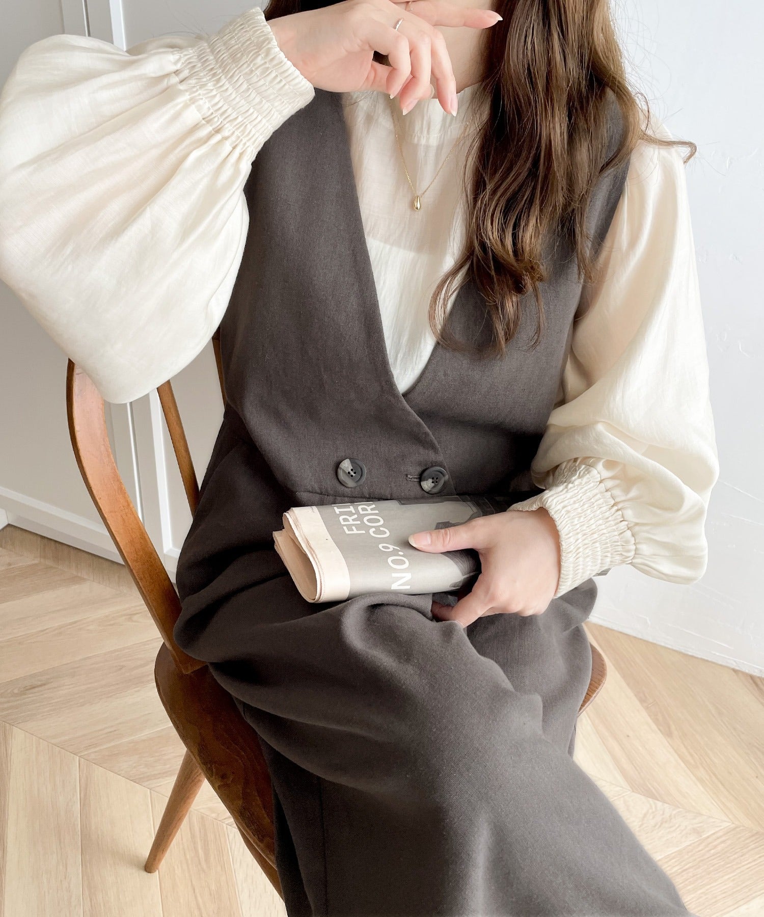 麻特有のざっくりとした風合いはかわいらしさとカジュアルさをアップしてくれるのでこなれた印象に。
