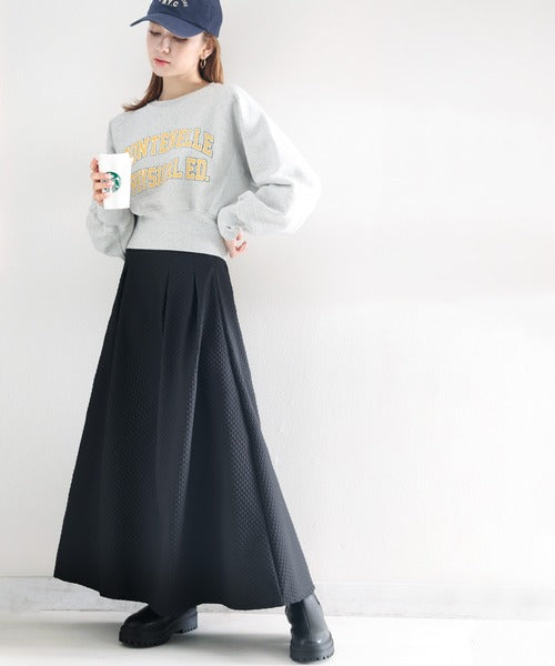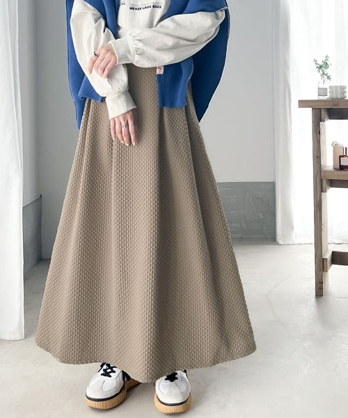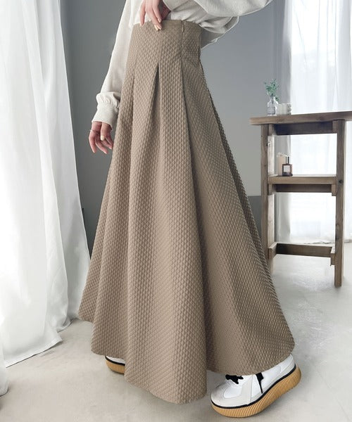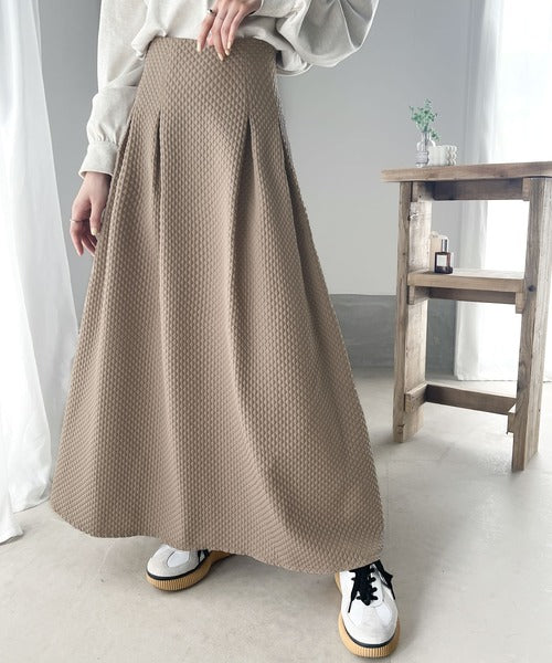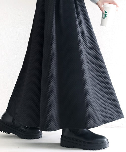 細かいダイヤ柄のふくれジャカード素材を使用したスカート。