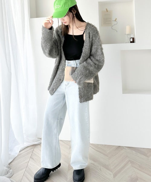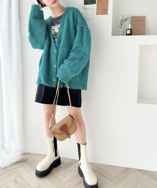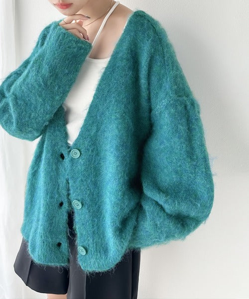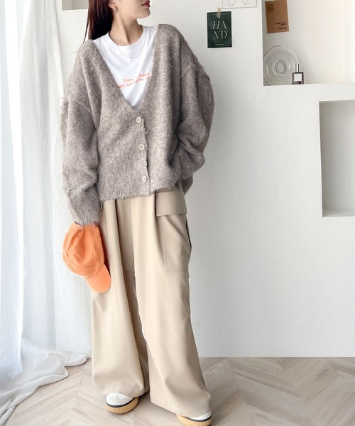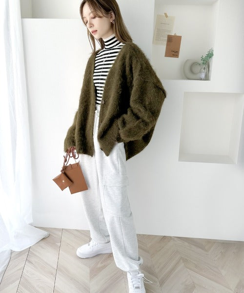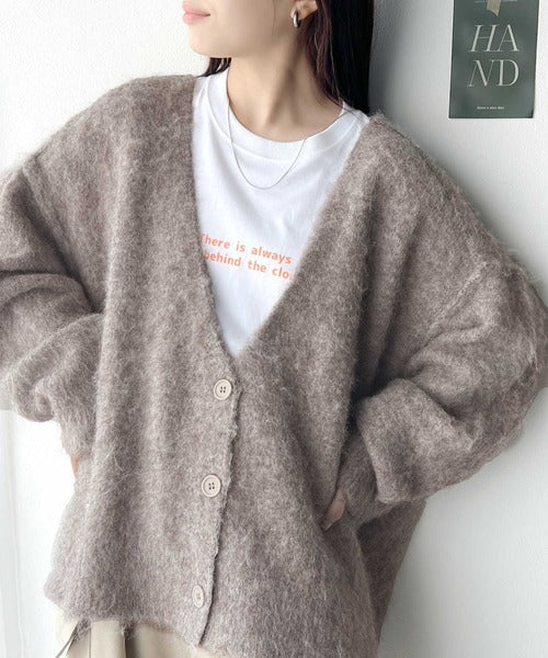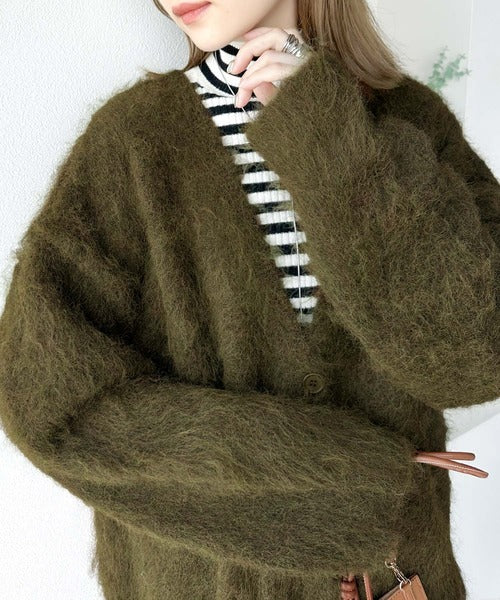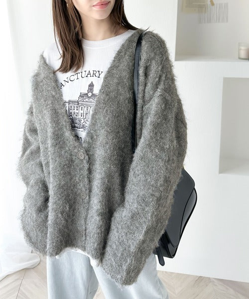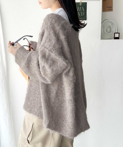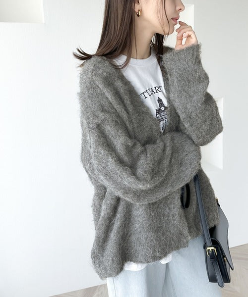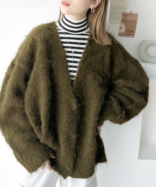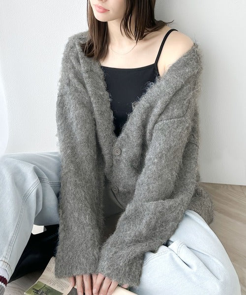 1枚で今っぽ可愛い。深Vネックシャギーニットカーディガン ce0940151