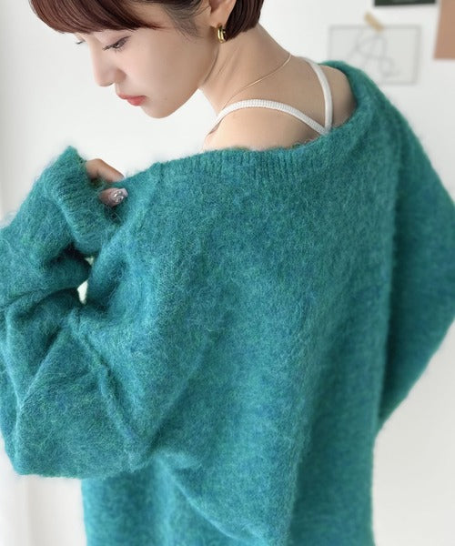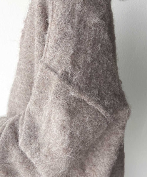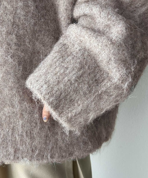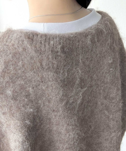 シャギー加工を入れたへアリーな表面感が特徴のニット。
