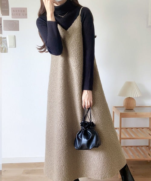 ふんわりくるくる。2wayフェイクリングウール キャミワンピ ce0940164