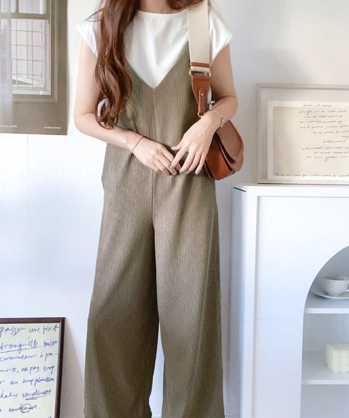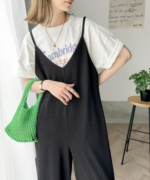 リラクシーな着心地なのに1枚でお洒落に決まるプリーツサロペット。