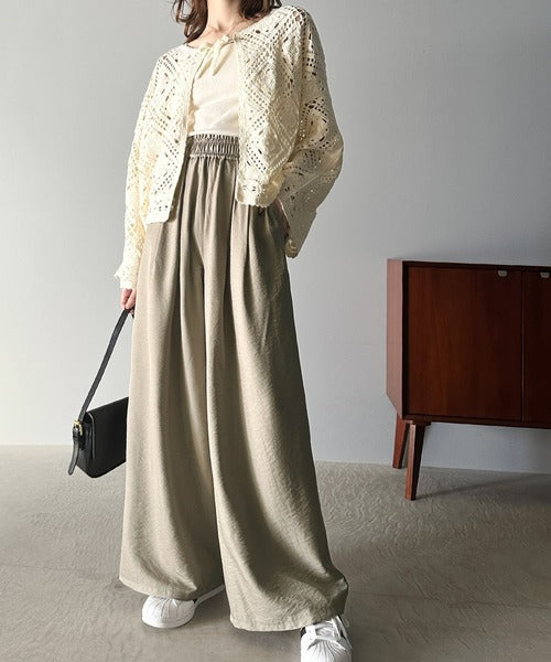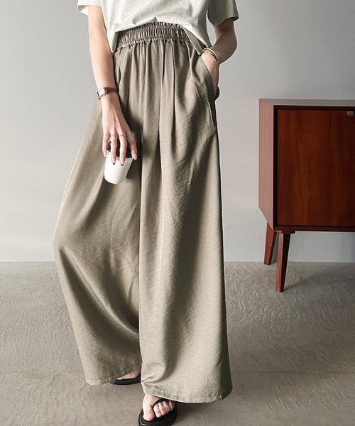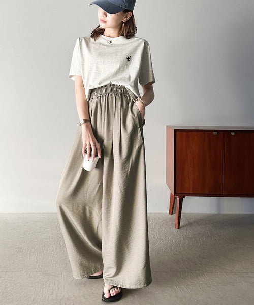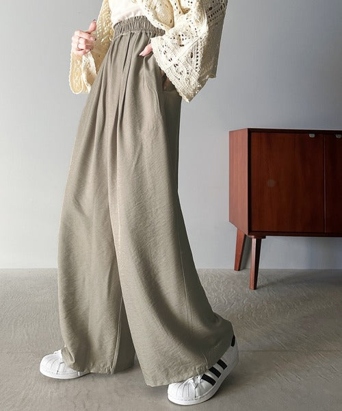さらりとした肌触りの生地×ワイドシルエットで夏にぴったりなパンツです。