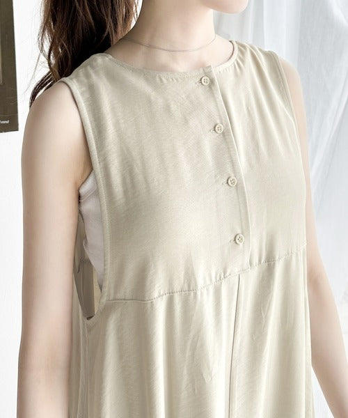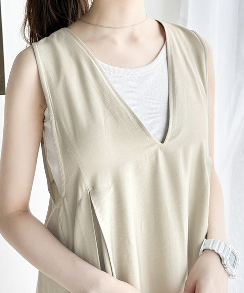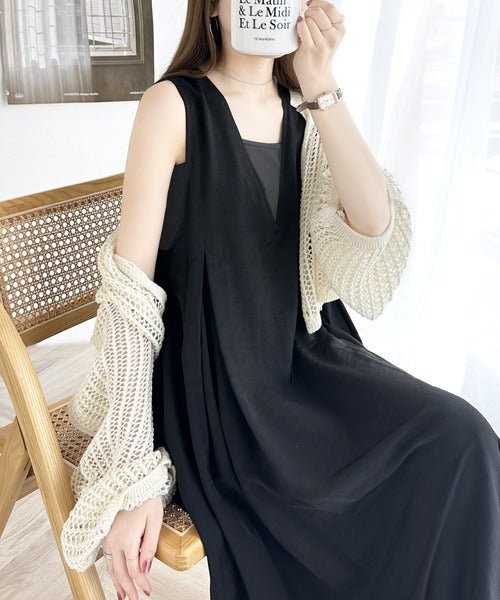 シーンや気分に合わせて、ノースリーブや様々なインナーとのレイヤードコーデを楽しめます。