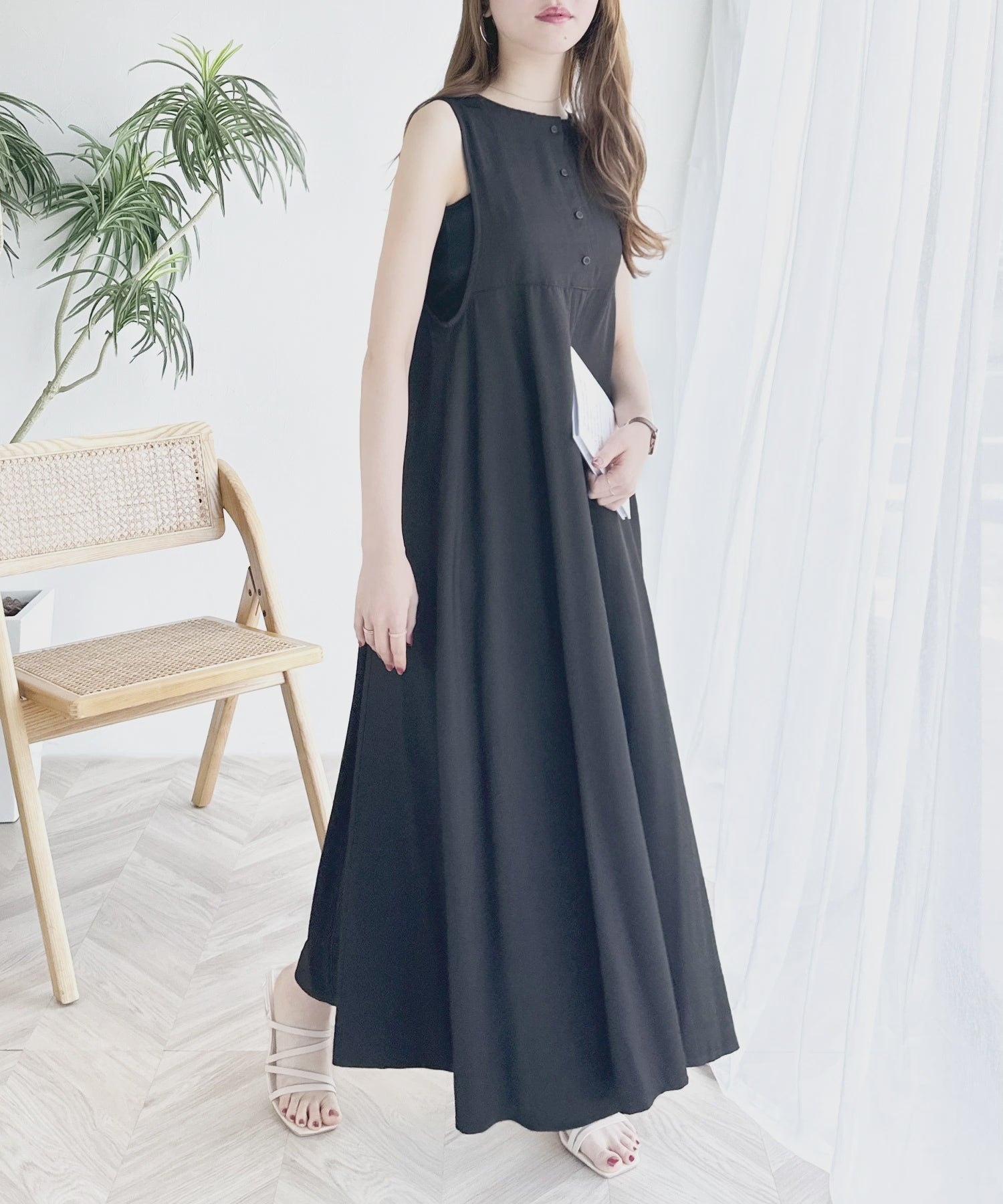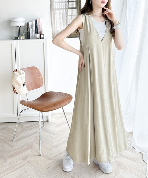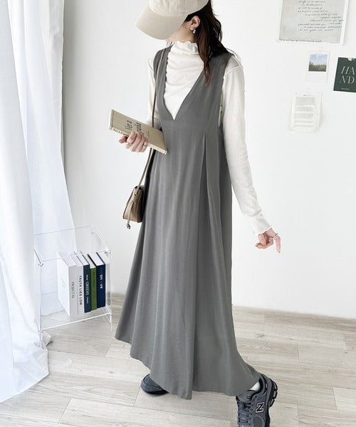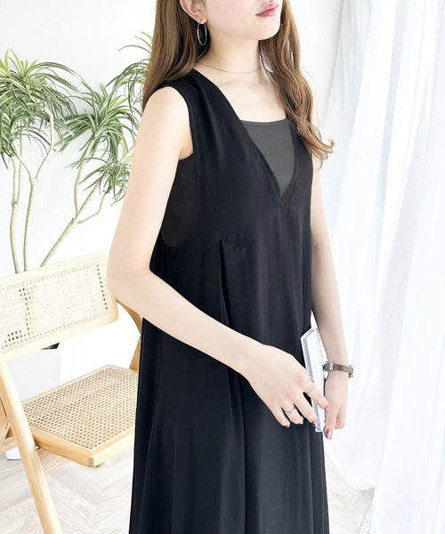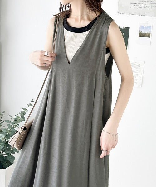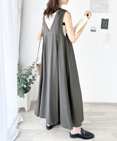 大人のAラインシルエット。前後2way深Vネックフレアロングワンピース ce0940180