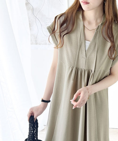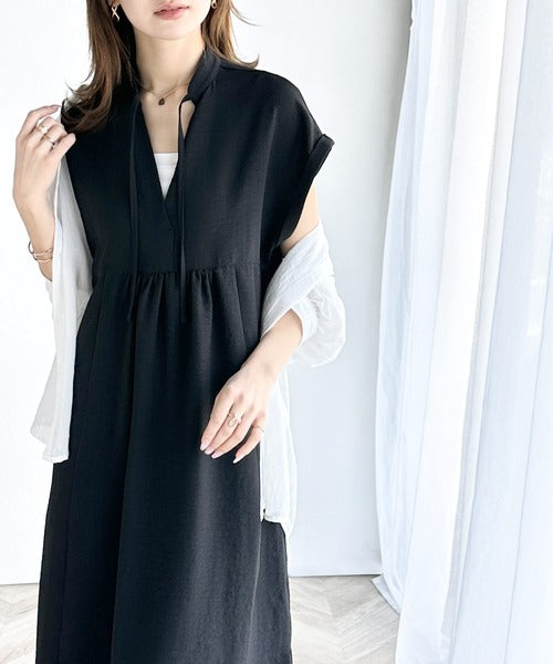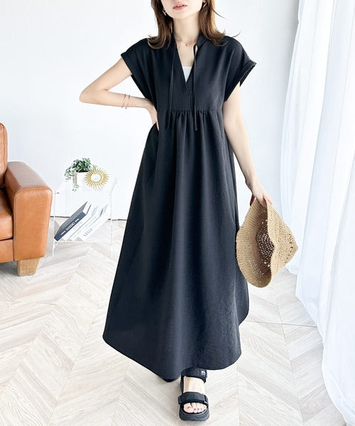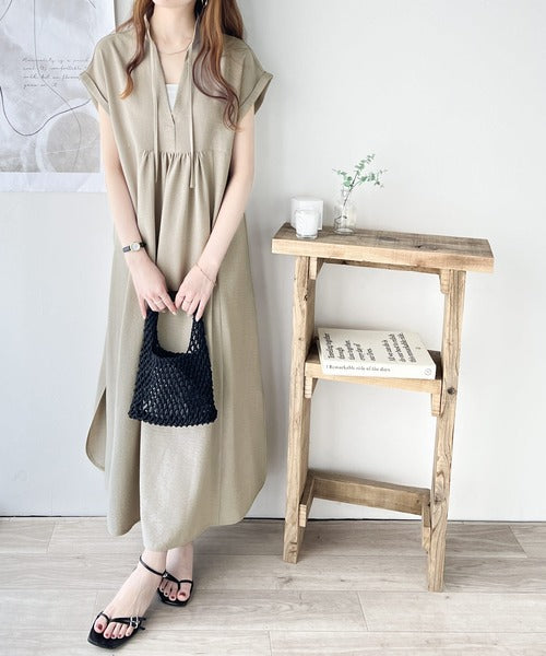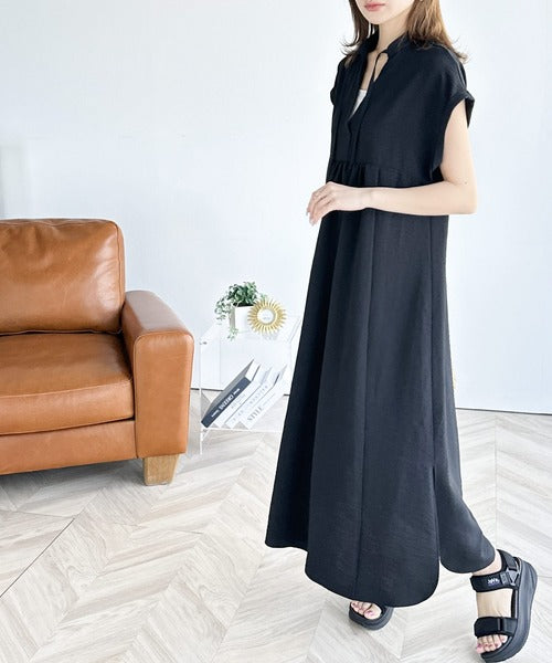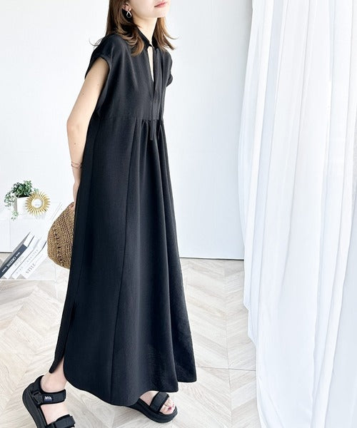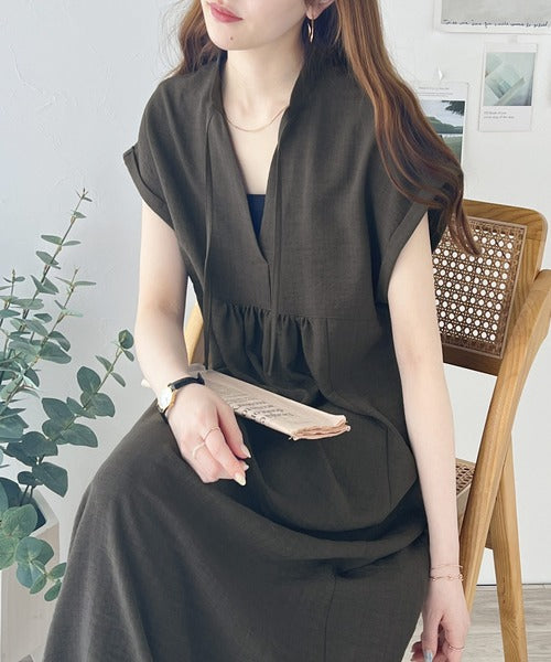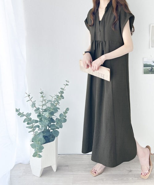 知的エレガント。Vネックフレンチスリーブロングワンピース ce0940183