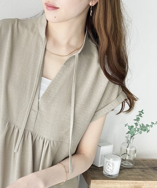 胸元のスキッパーデザイン襟元リボンが大人のこなれ感を演出。