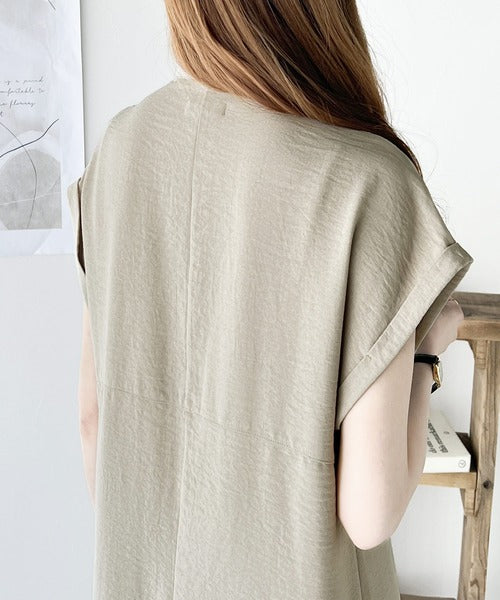 袖ロールアップやサイドスリット、裾のラウンドカットデザインが施されており、シャツワンピのような知的な印象も与えてくれます。