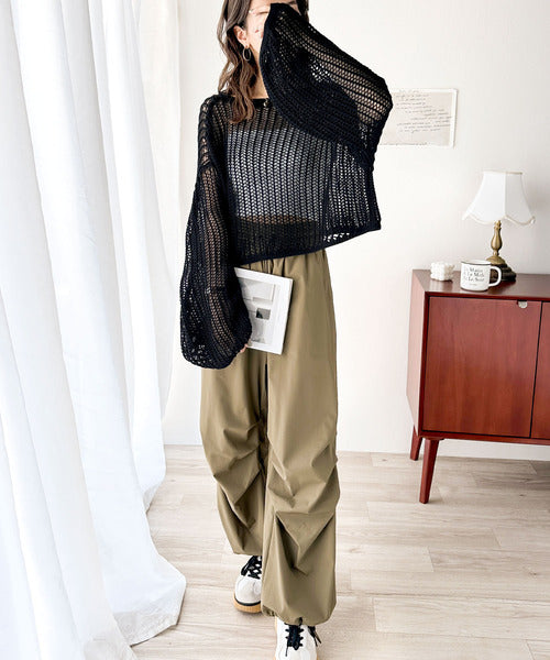 大人の華やかさ漂うざっくりとした編み目と、絶妙なショート丈が軽やかさを演出します◎