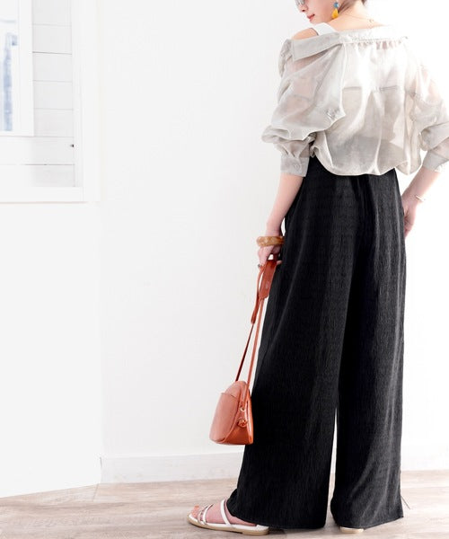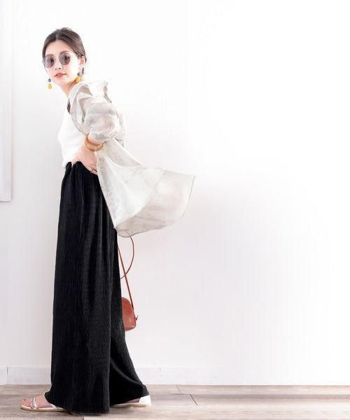 ランダムプリーツのシワ加工がひとあじ違うオシャレさを演出。