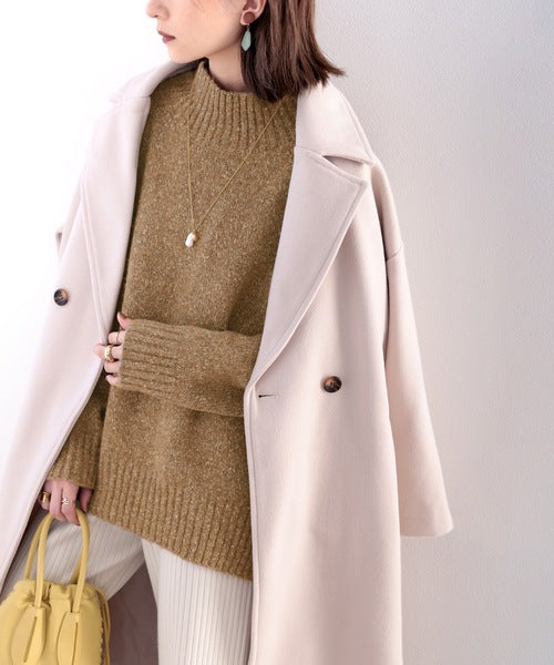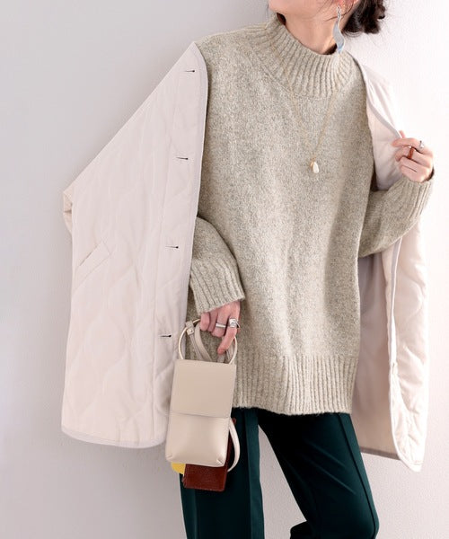 程よいハイネックで首回りを細くスッキリと見せてくれます。