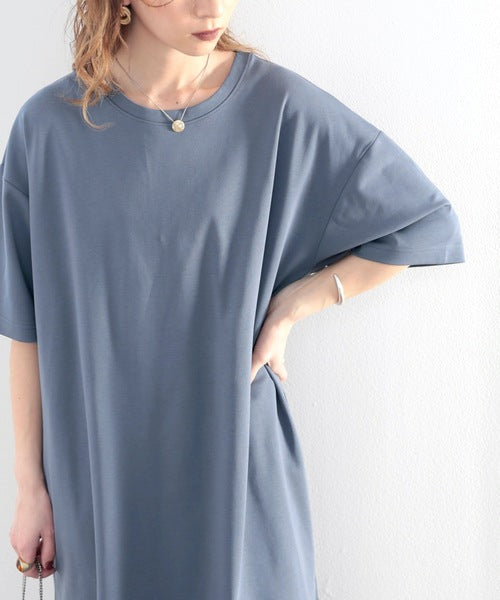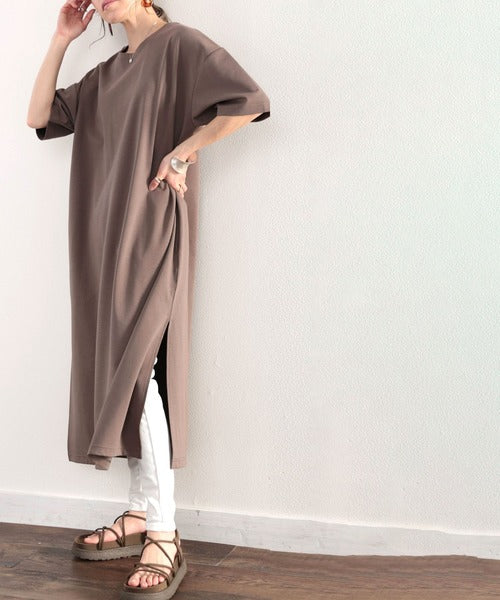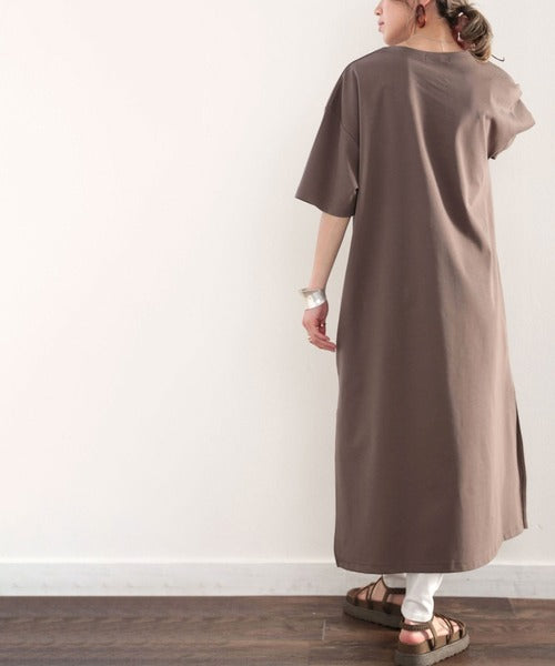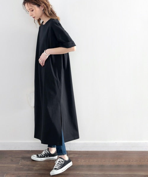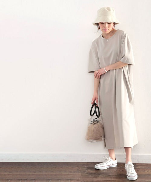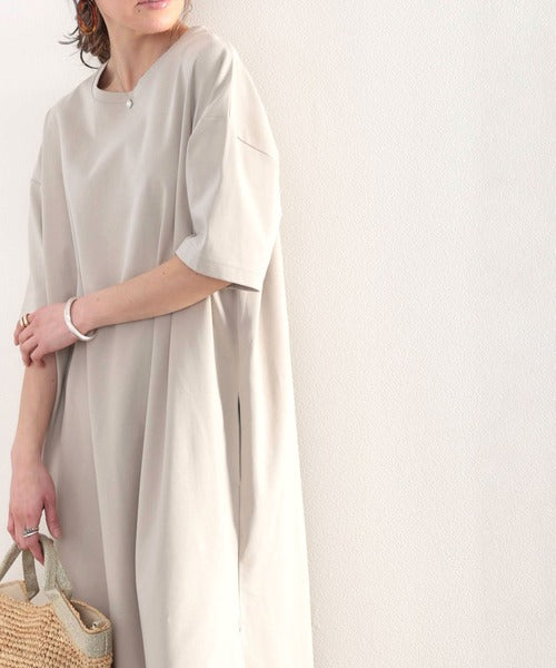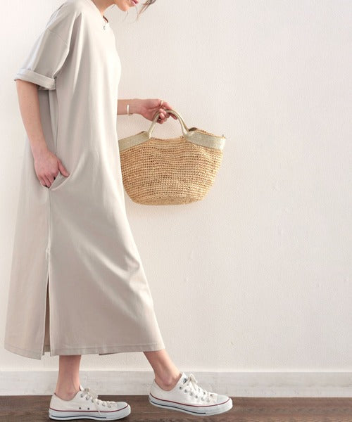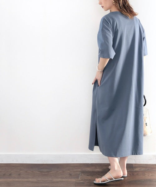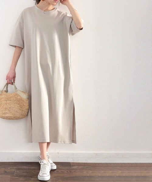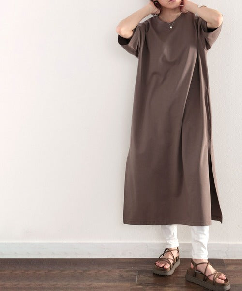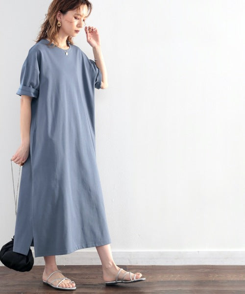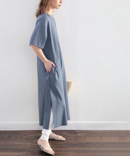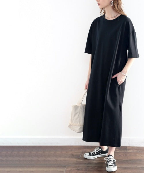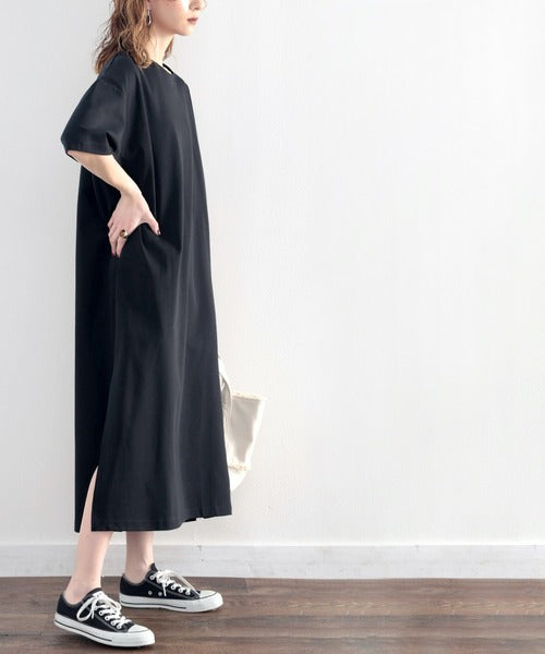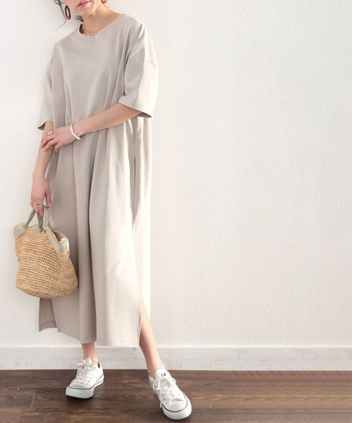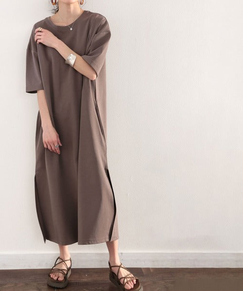 ゆったりとしたシルエットが可愛い無地ロング丈ワンピース
