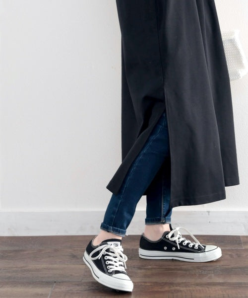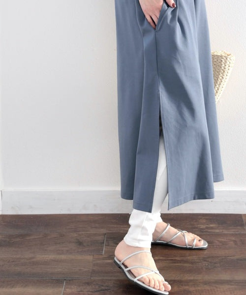 スリットが深く入っているので、パンツやスカートなど重ねてもよいと思います。