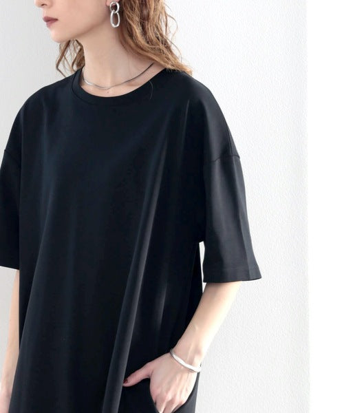 ・体のラインを拾わないのでビッグシルエットトップス感覚で着用可。
