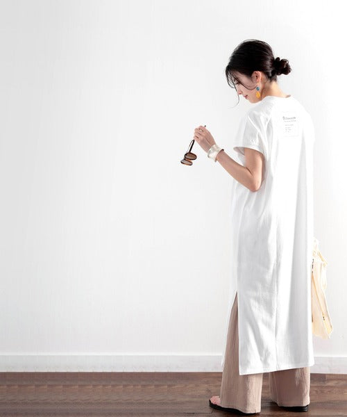 【sustaina+】綿100%USAコットン。バックプリントで1+マキシ丈ワンピース ce0960023