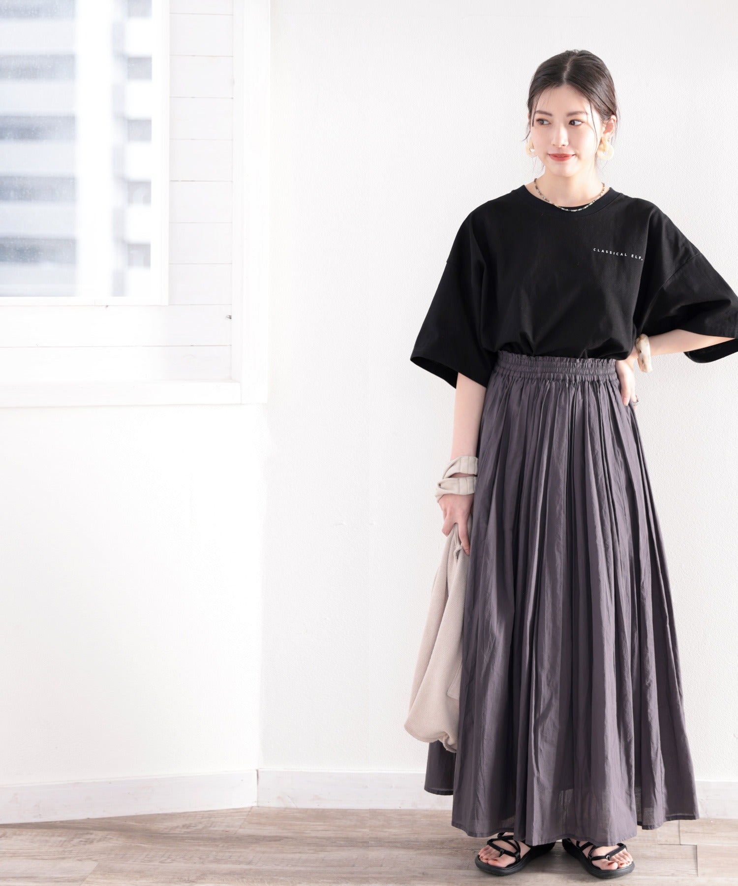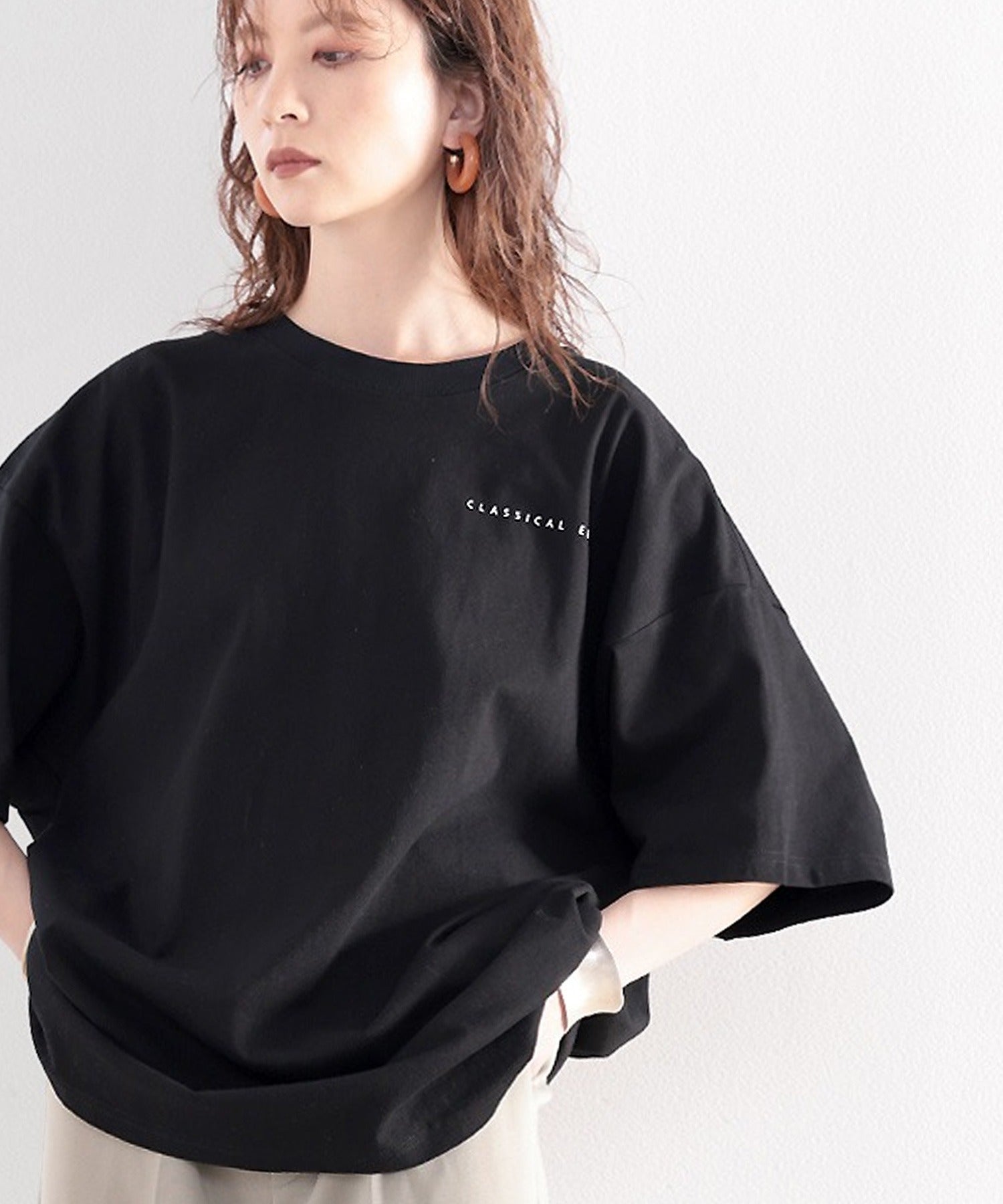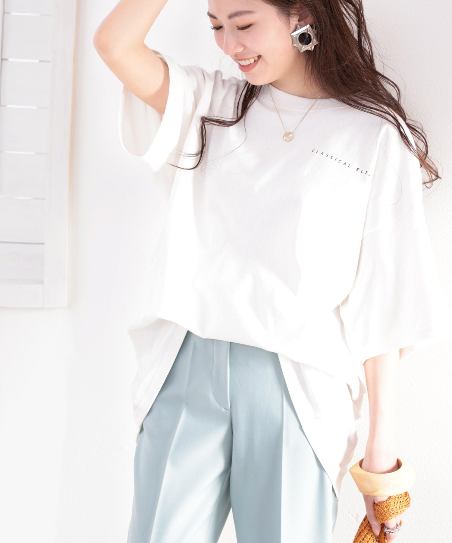 肘まで隠れる袖丈は同じTシャツでもぐっと大人っぽい印象に。