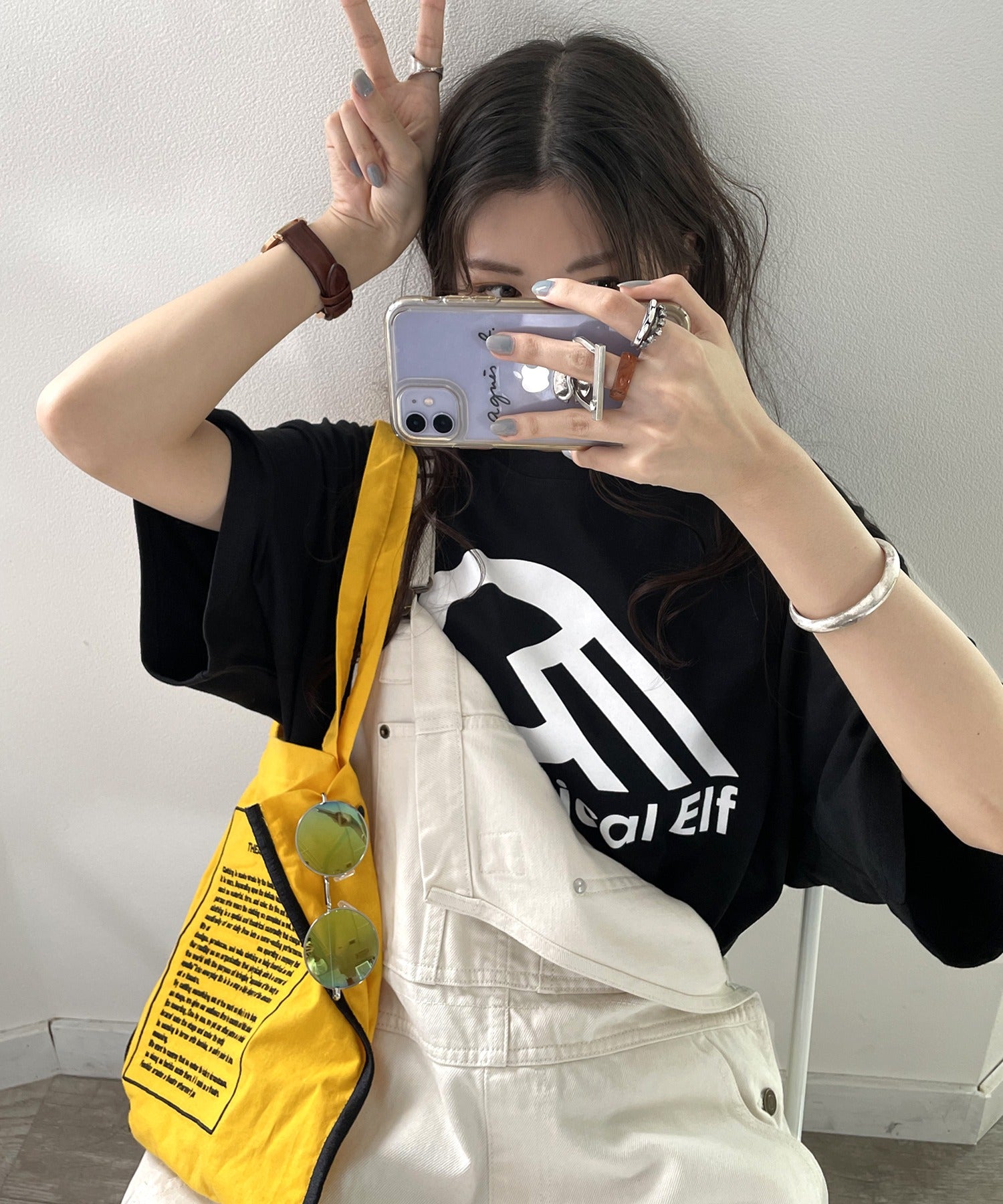 彼のTシャツを借りてワンピース風に着るのも◎