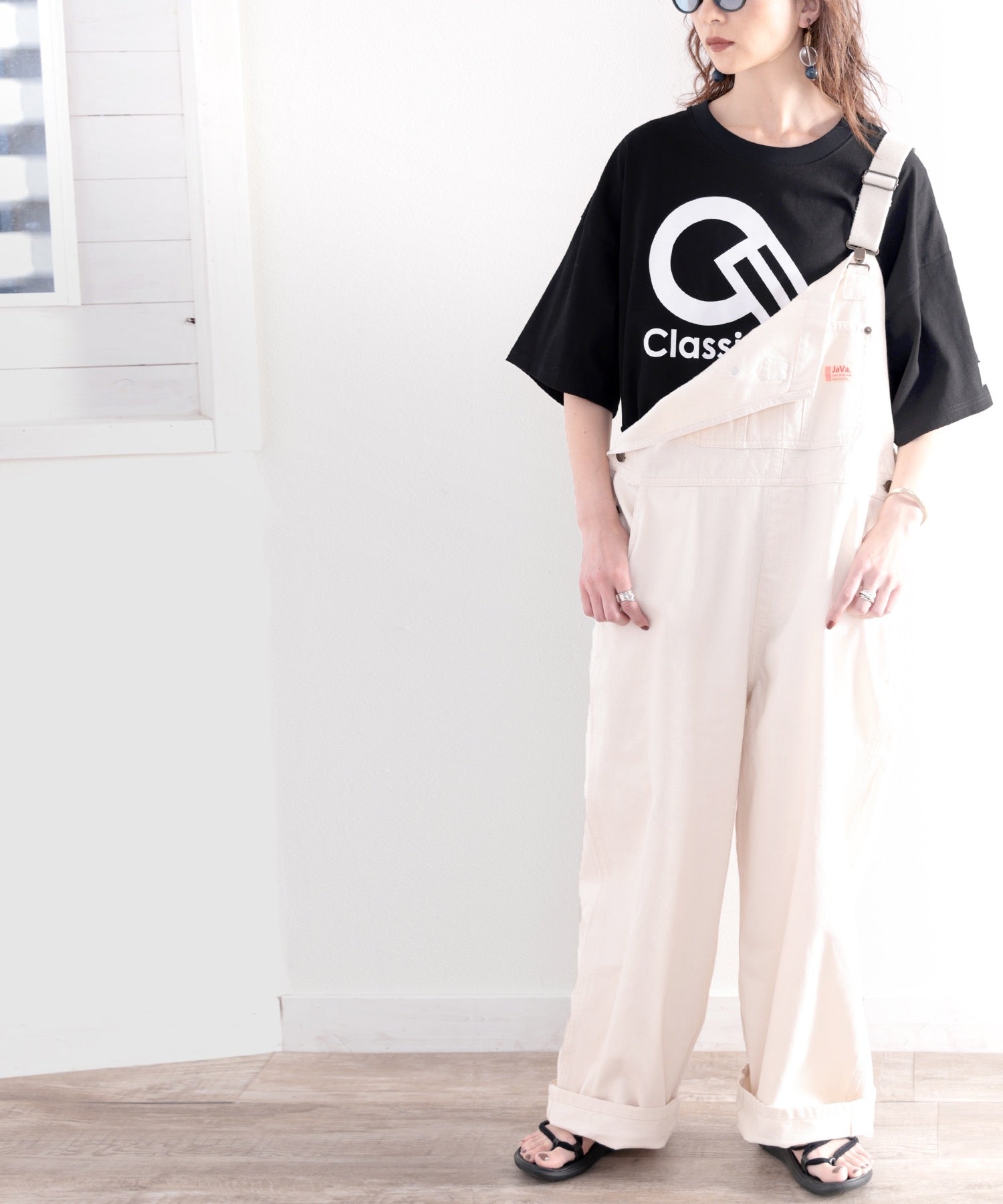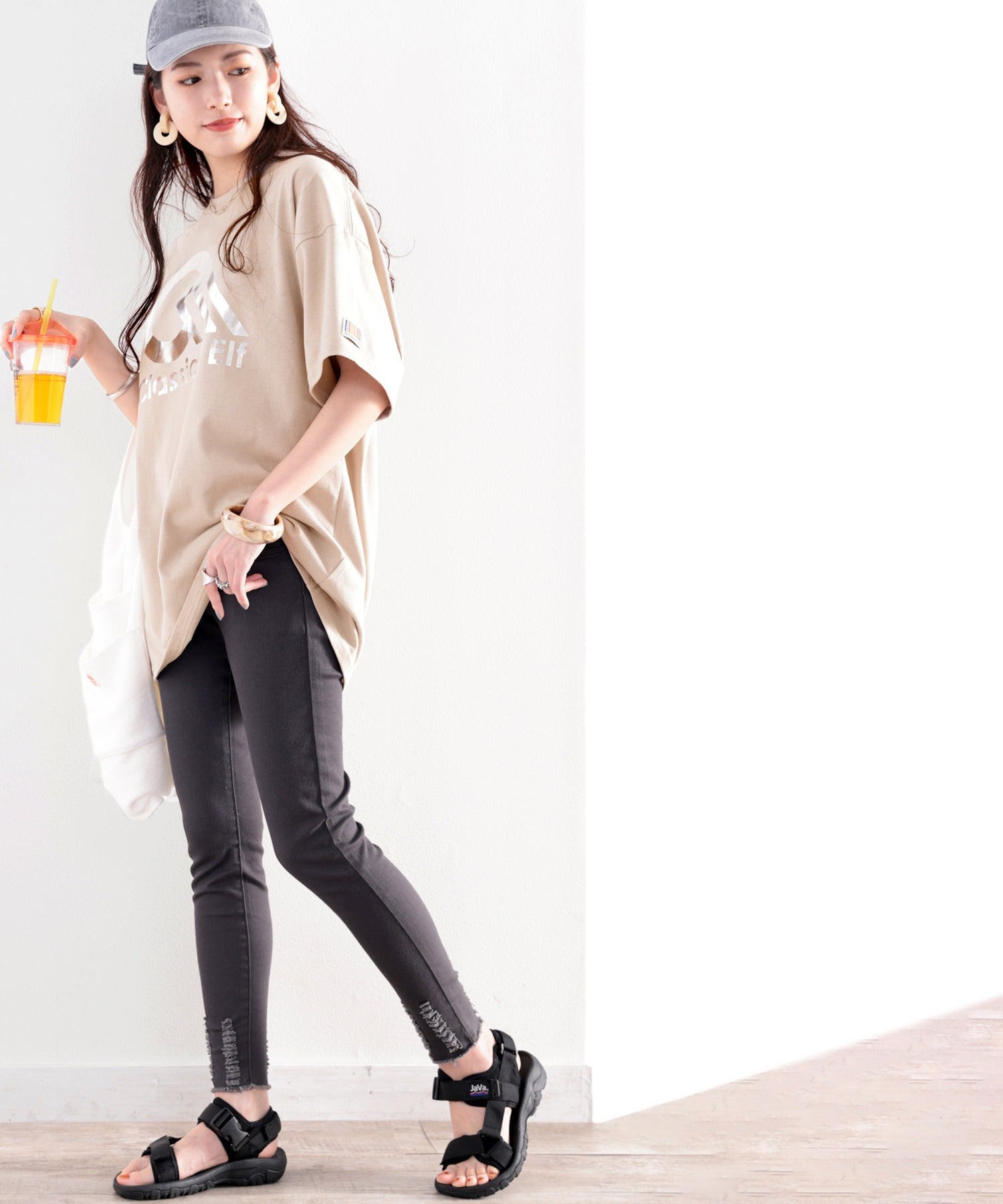 オーバーサイズがかえって女性らしさを演出してくれます。
