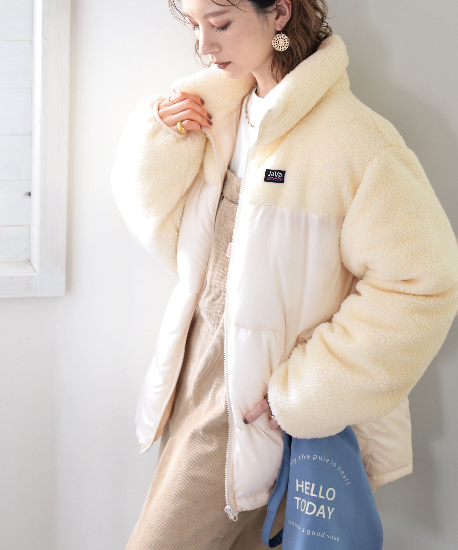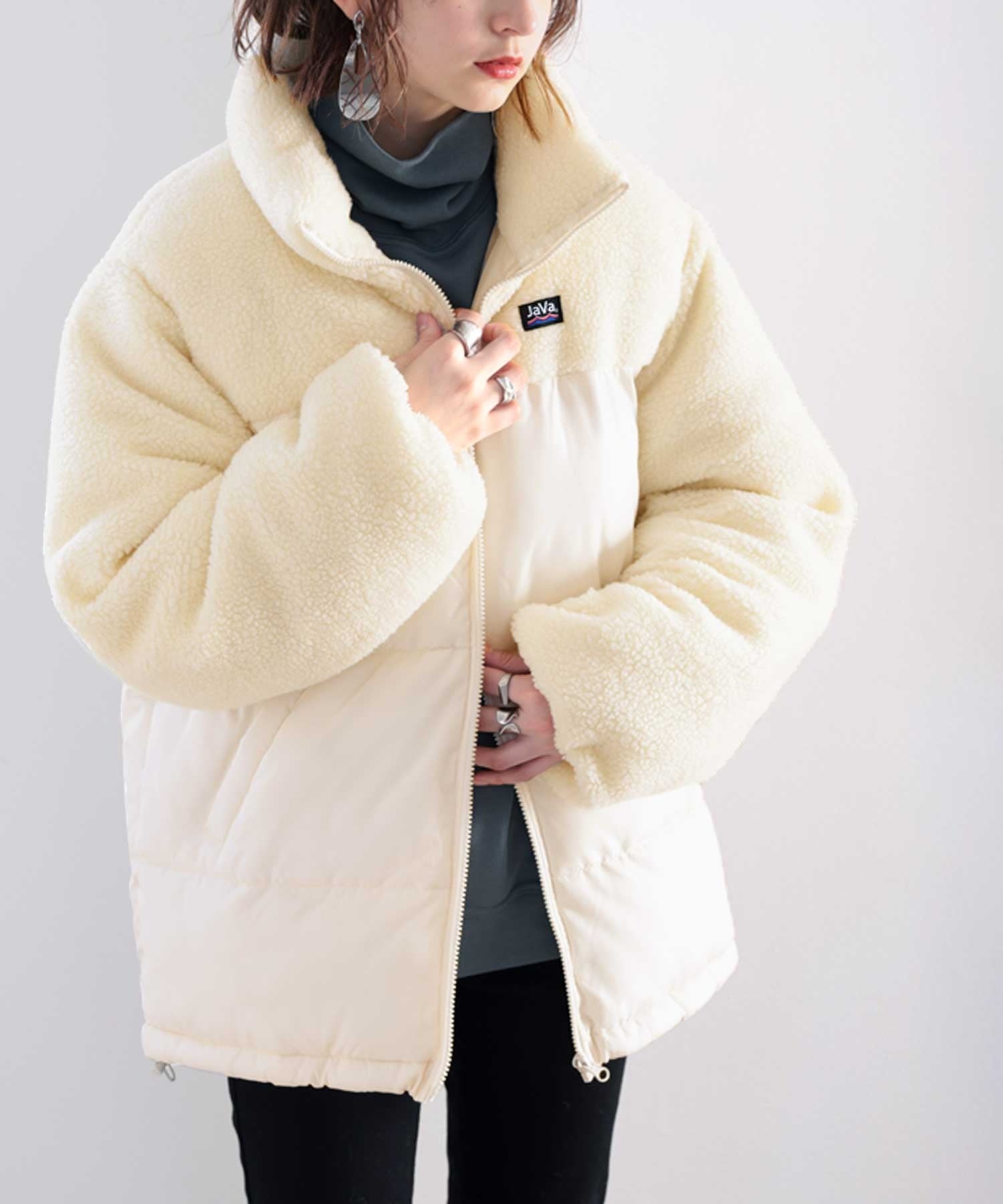 《Javaジャバコラボ》もこもこ&暖か。ボア切替えフェイクダウンジャケット ce0960079