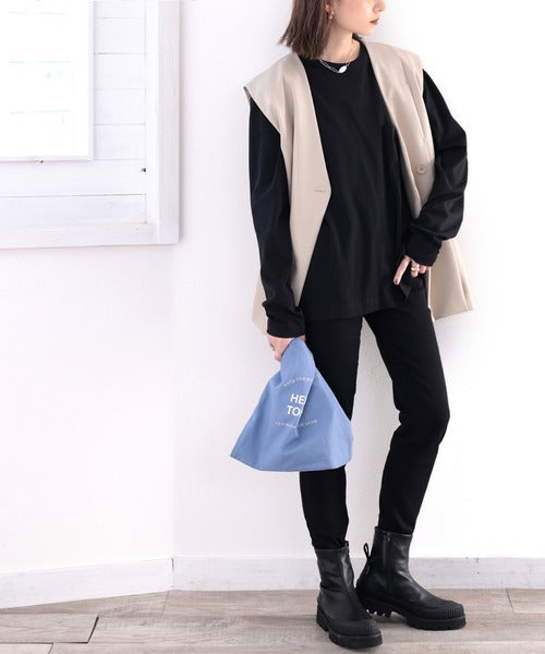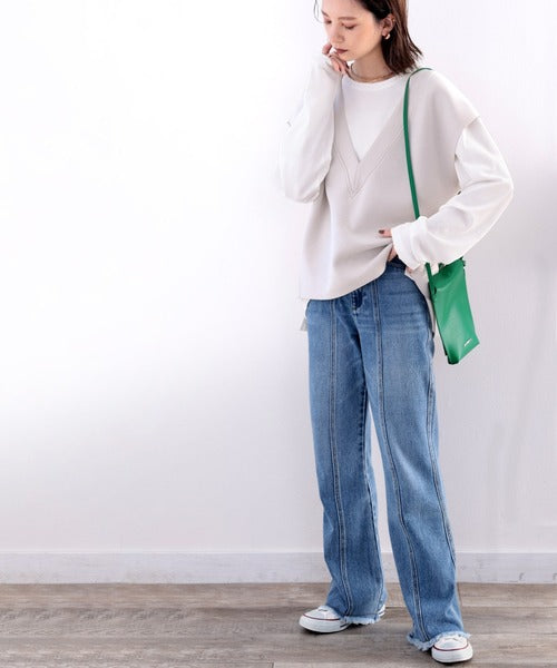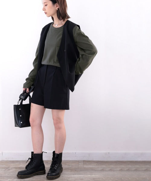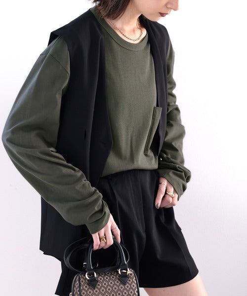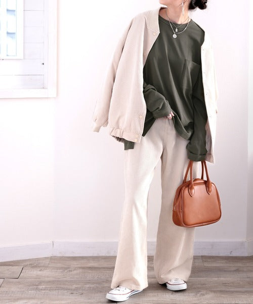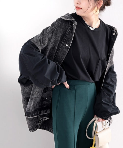 季節の変わり目にはジャケットやブルゾンとのレイヤードにもぴったりです。