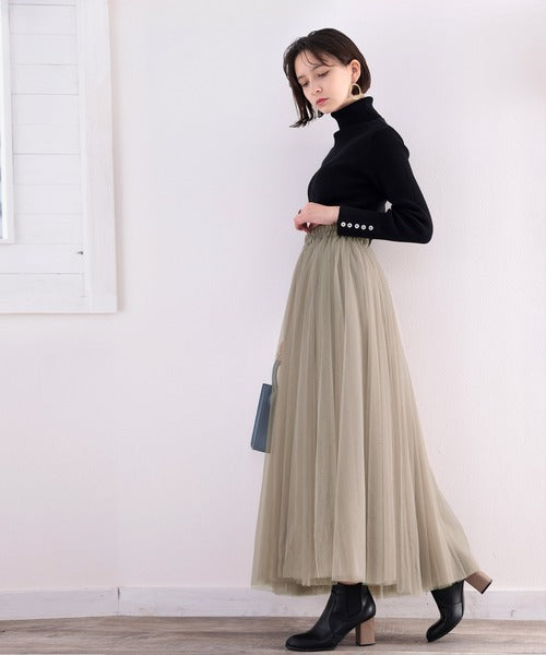 甘すぎない大人可愛さを演出してくれる、上品なチュールスカートです。