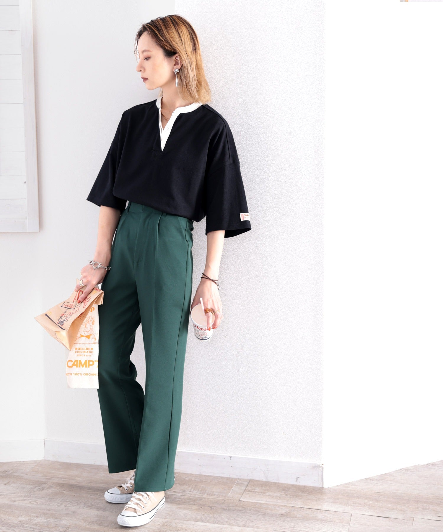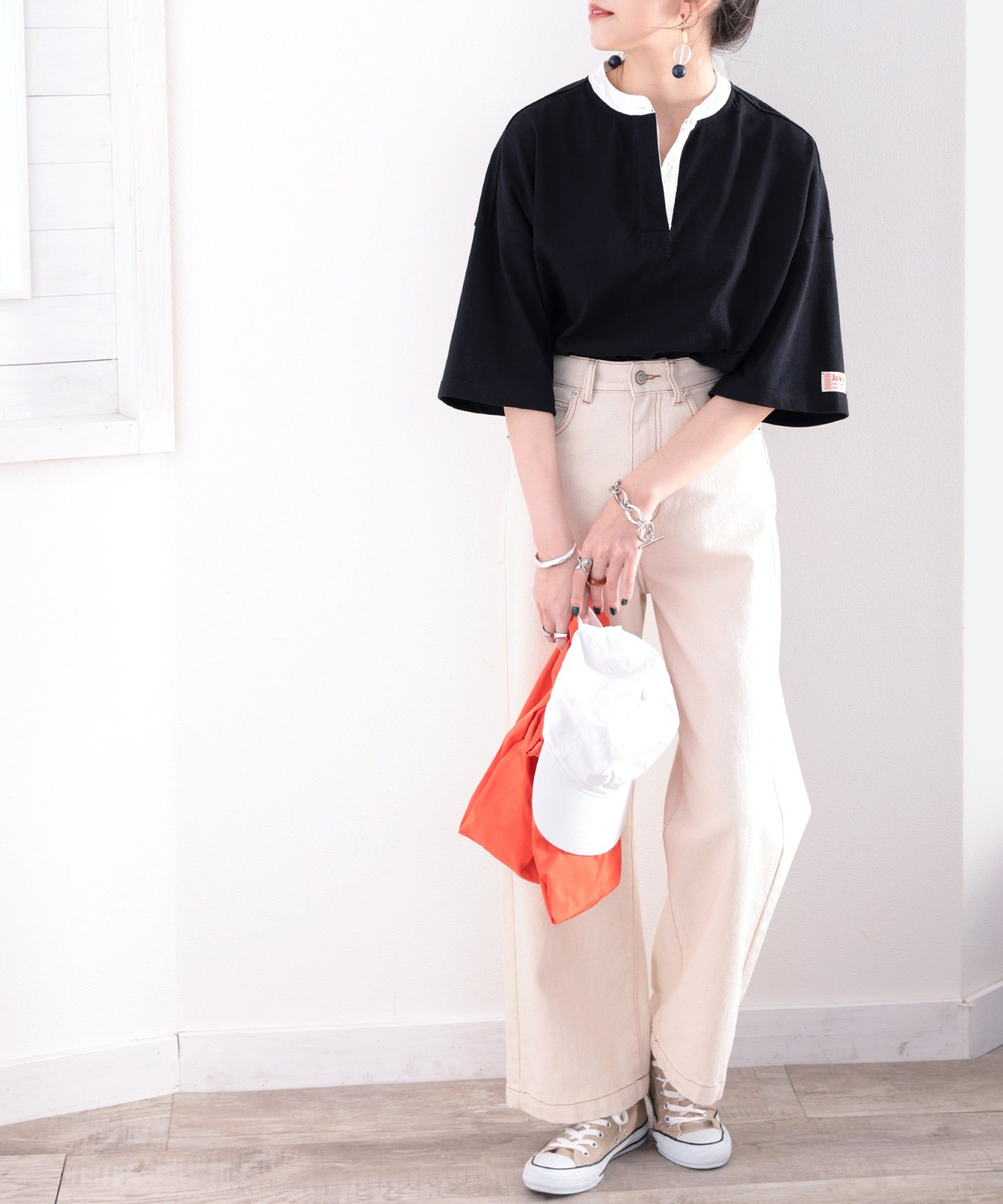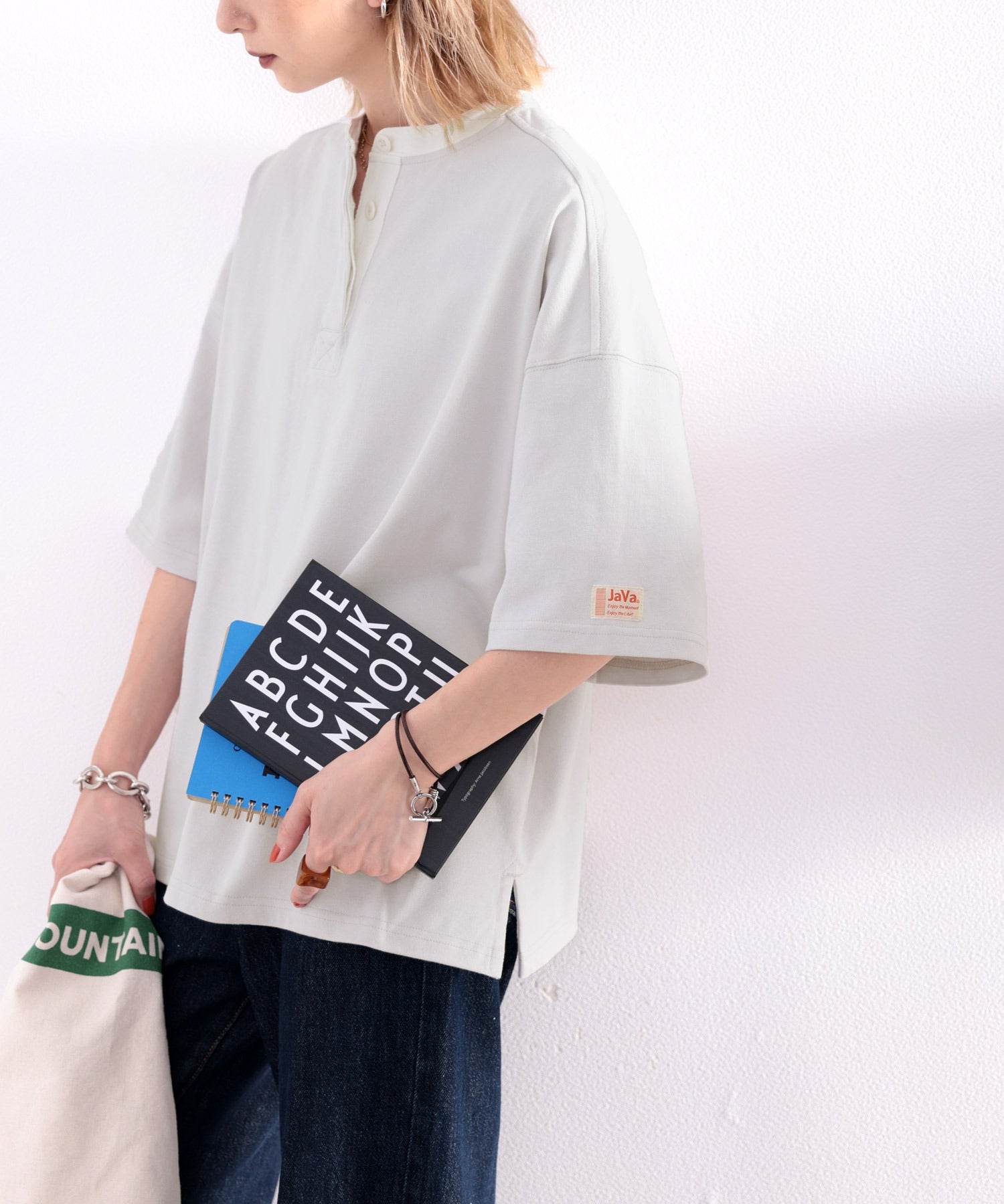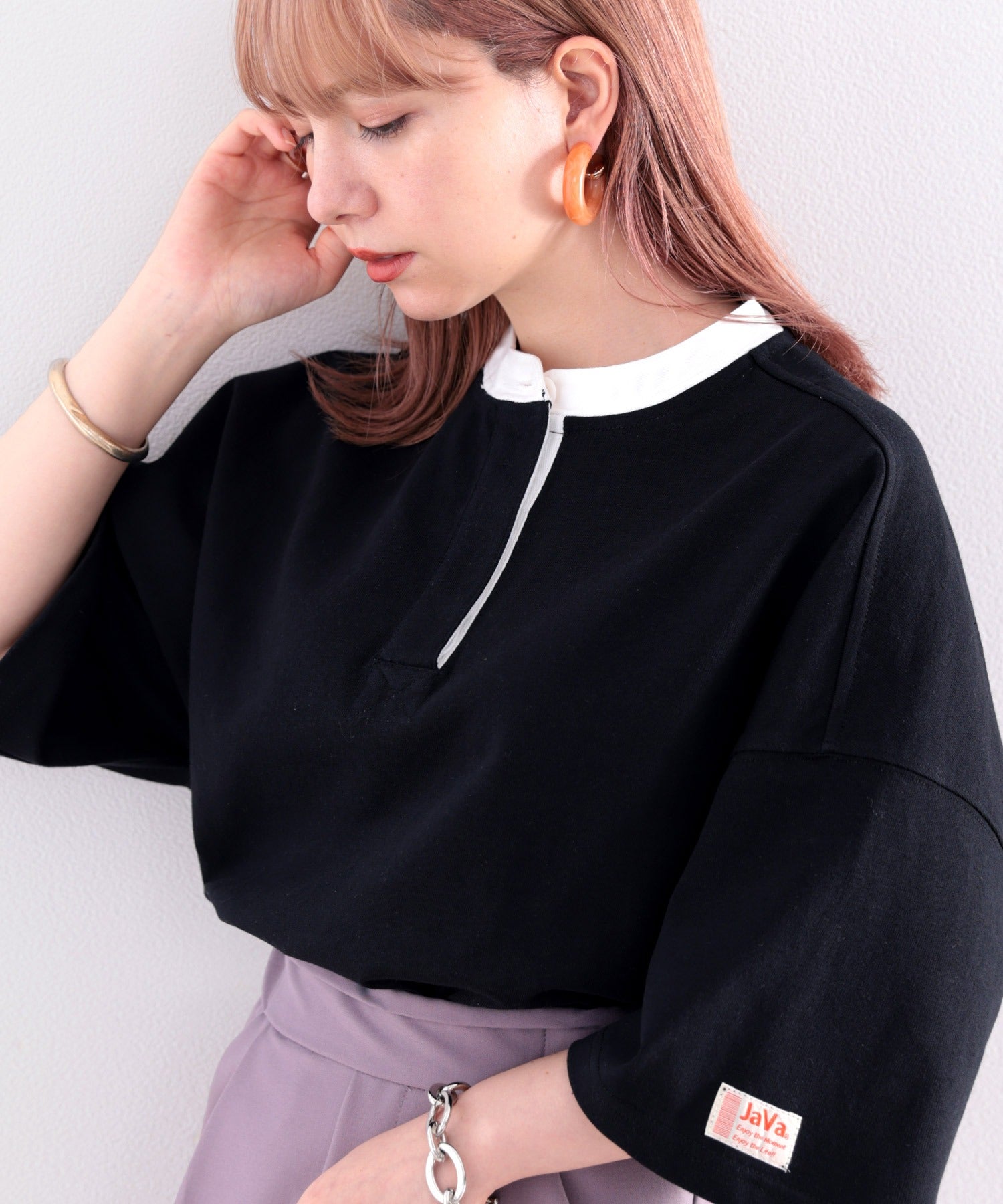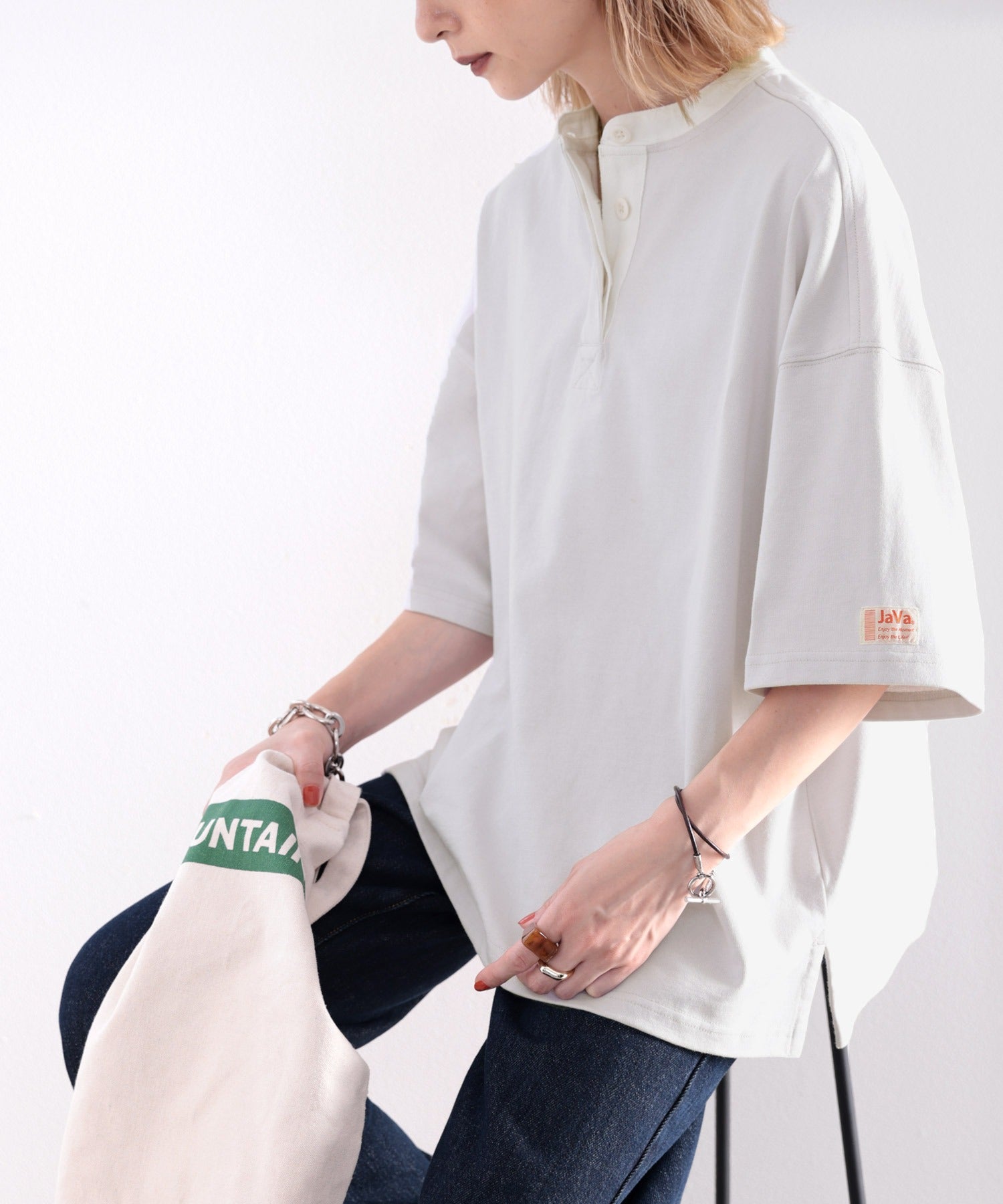 配色使いがお洒落なバンドカラービッグTee。