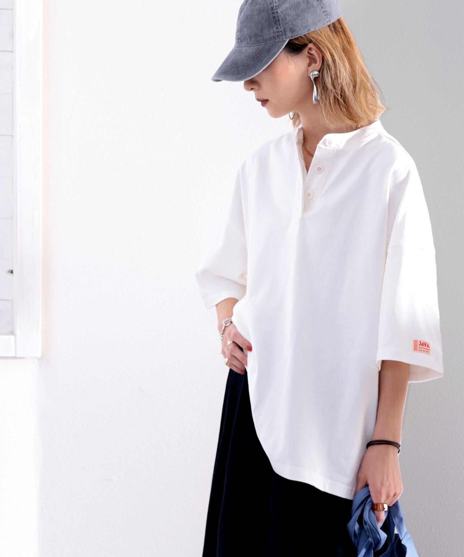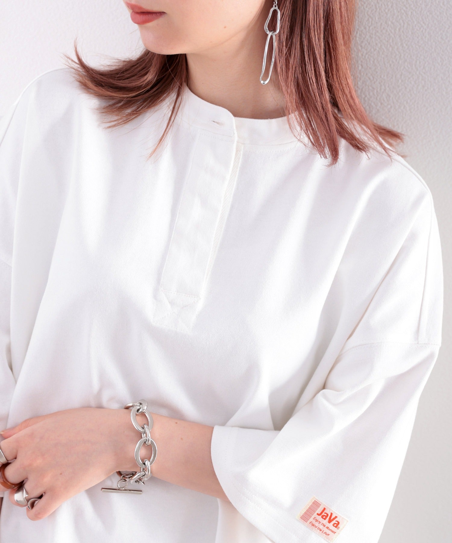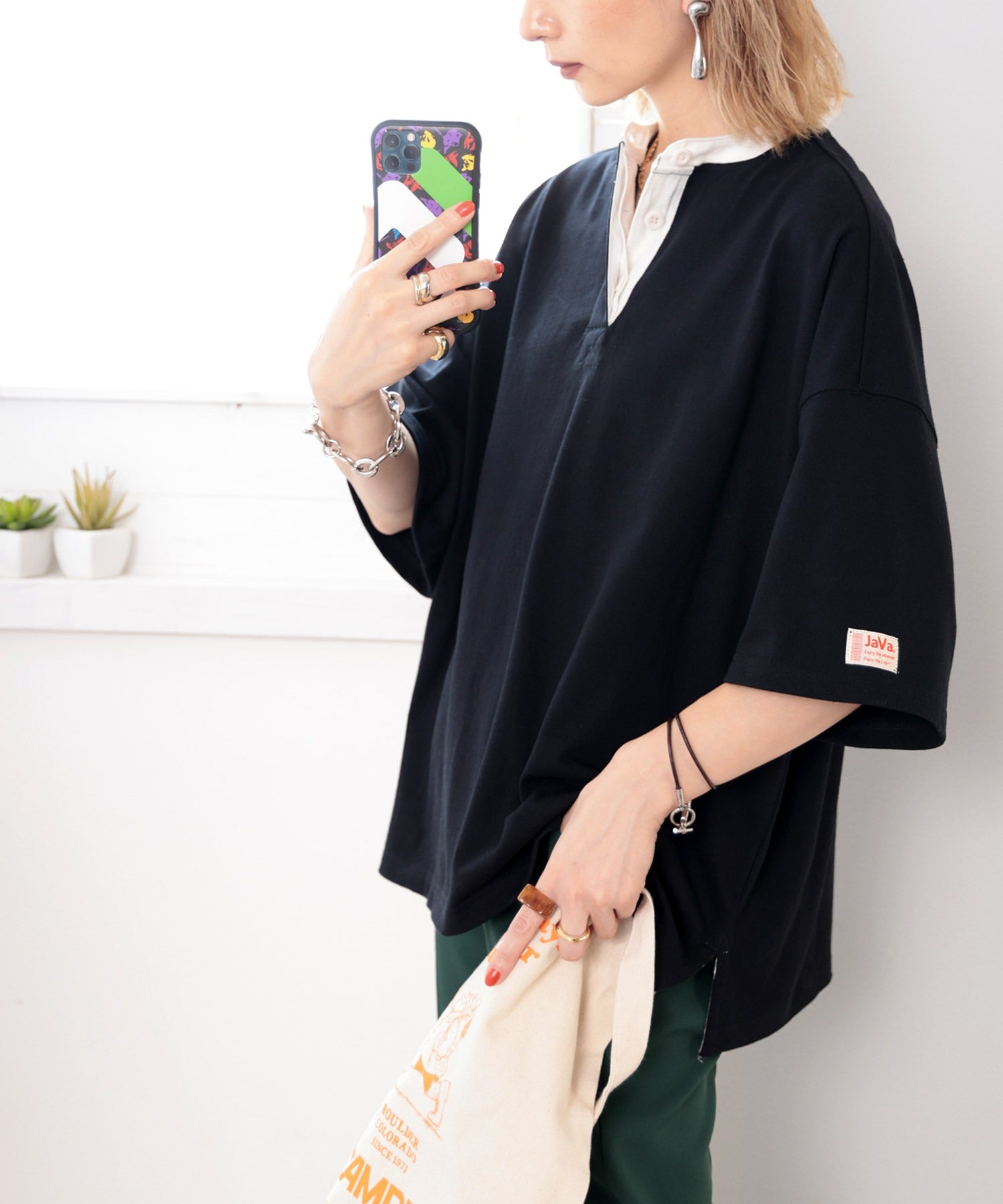 《JaVa ジャバコラボ》USAコットン100%、バンドカラートップス。 ce0960089