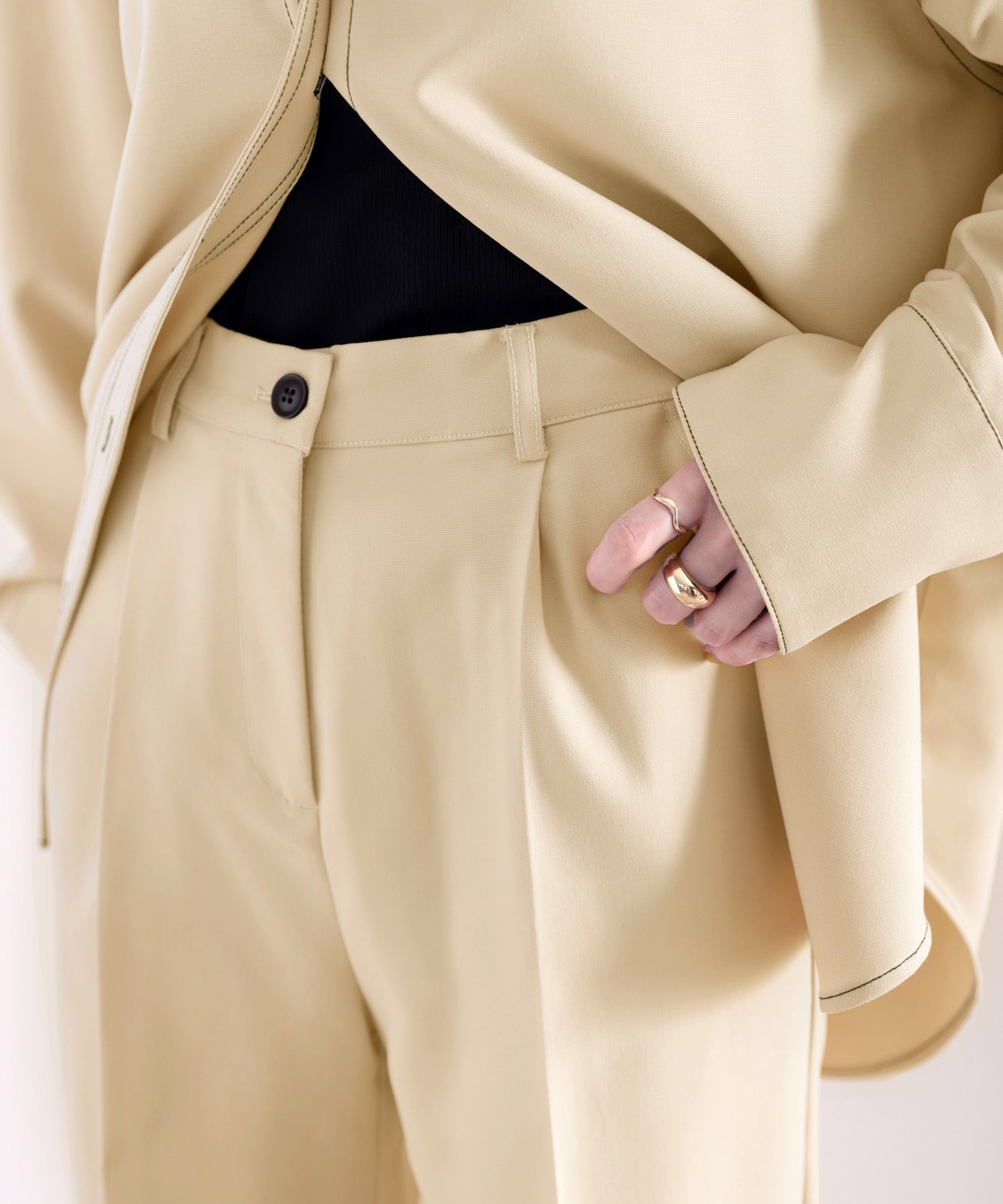 セットアップも楽しめる、クリーンで大人っぽいタックパンツ。