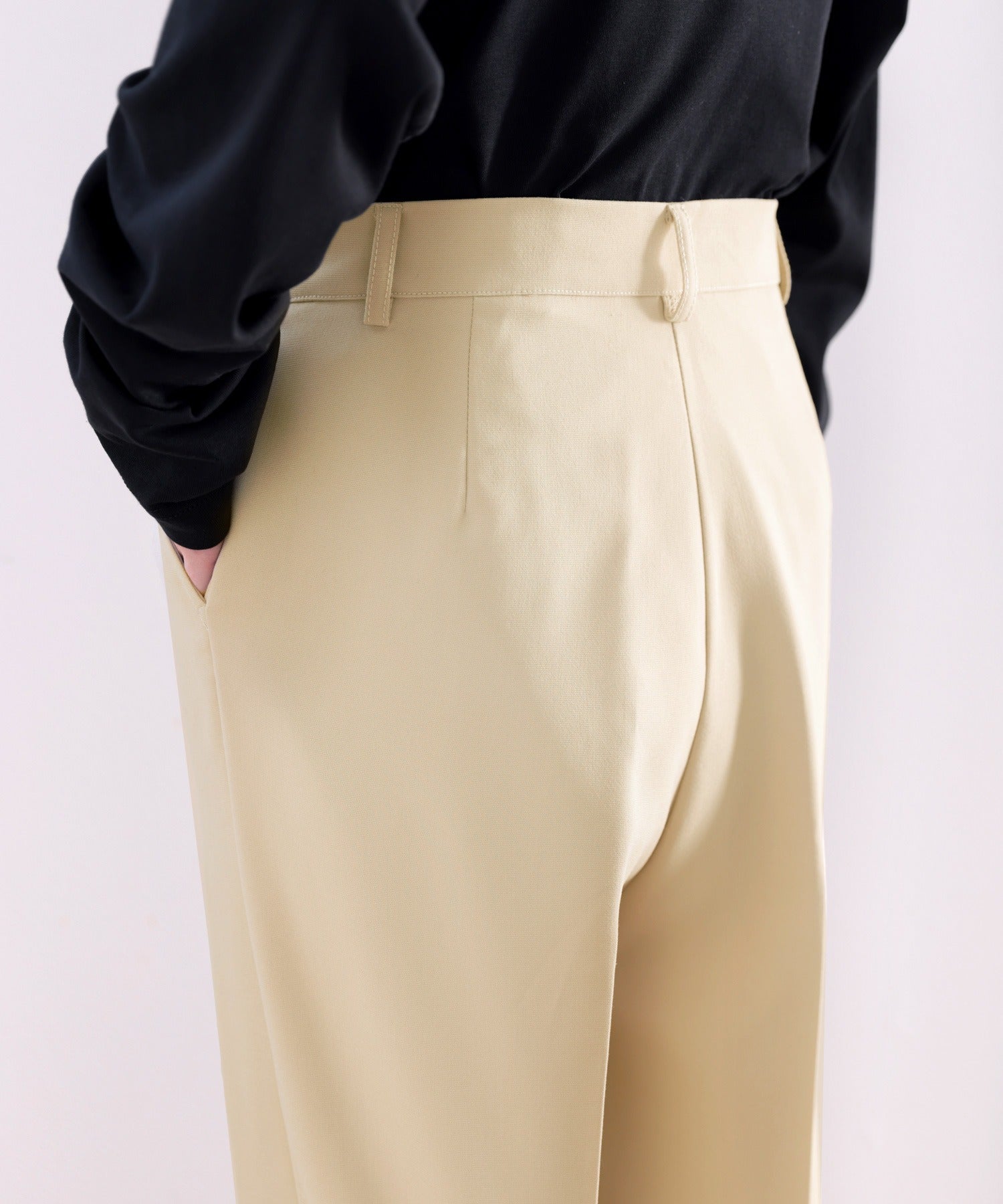 さらりハリ感のある生地だからセンタープレスが綺麗。