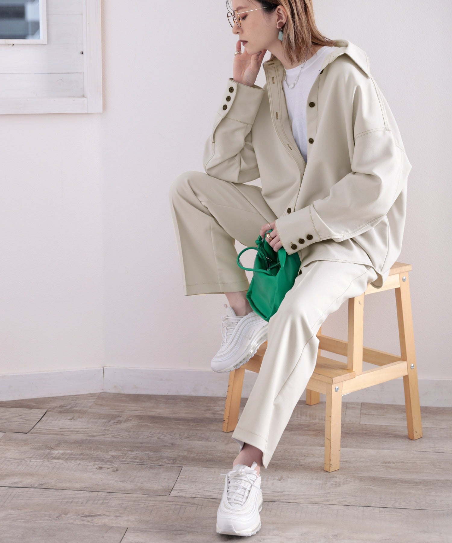 セットアップコーデにすれば一気にトレンド感アップ。