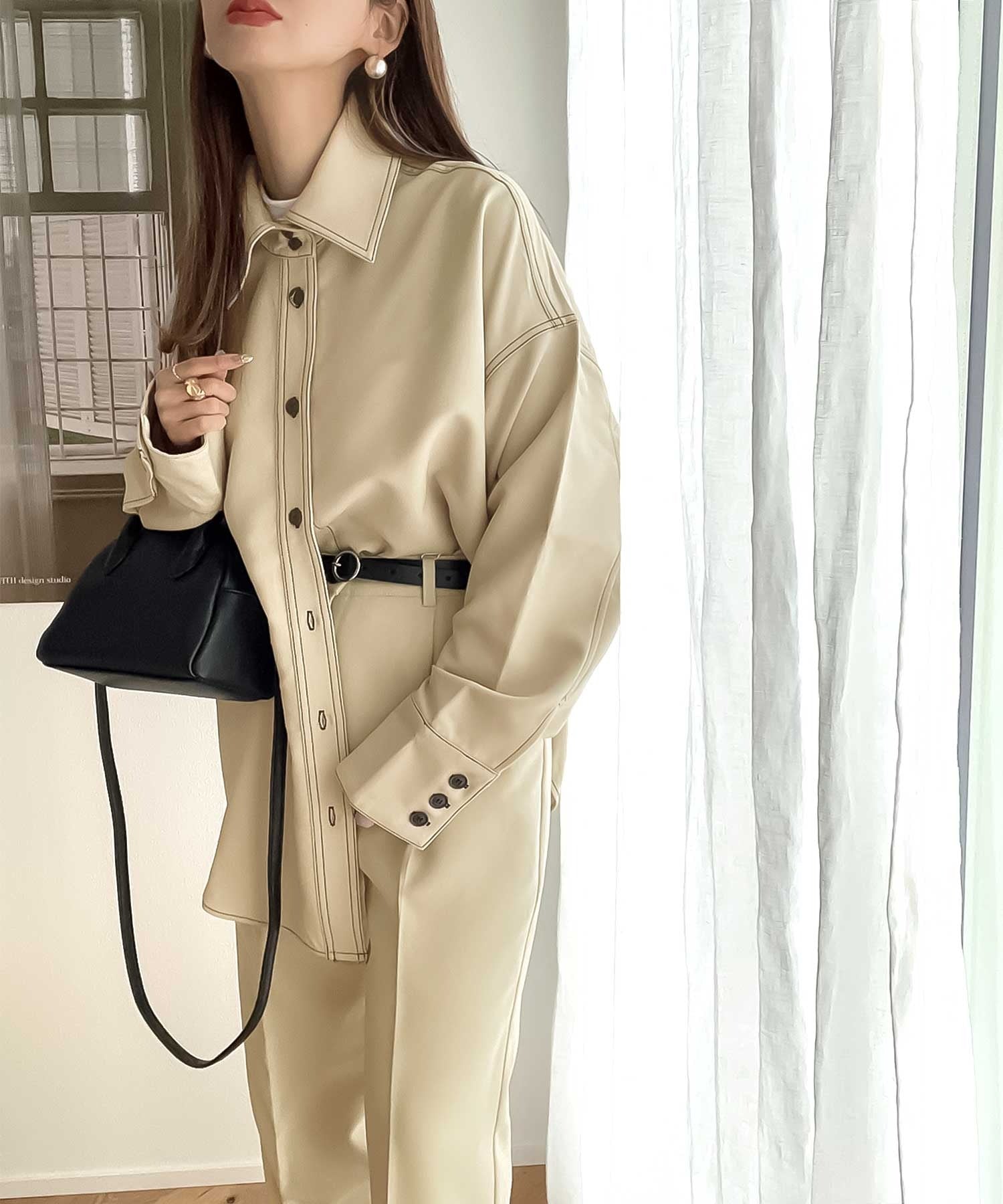 ラフすぎない上品な素材感とスッキリしたモードシルエットが、お洒落度を高めてくれます。
