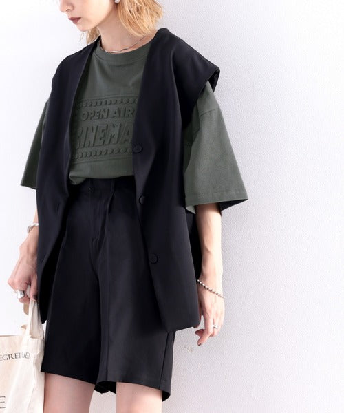 ビッグサイズの半端丈袖でメンズライクに着こなせるTシャツ。