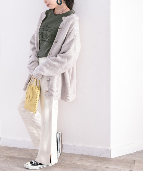 ワイドパンツやロングスカート合わせるだけでも大人のワンツースタイルに仕上がります。